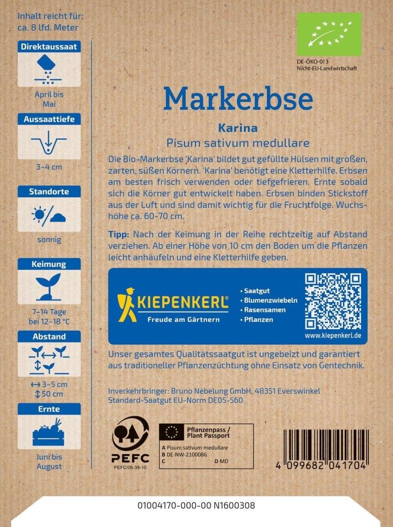 Kiepenkerl BIO Markerbse Karina, ertragreiche robuste Bio-Markerbsensamen, Kiepenkerl