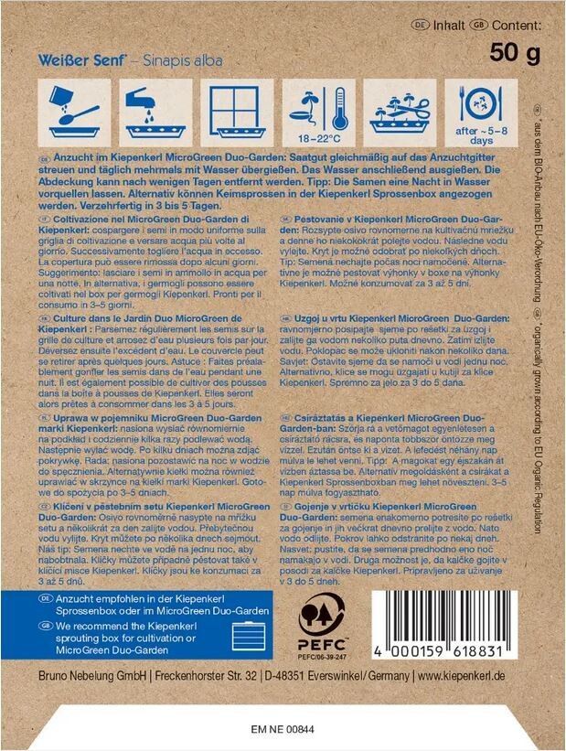 Kiepenkerl BIO Microgreens Weißer Senf, Inhalt: 50gr., intensiv-scharfer Geschmack, zur