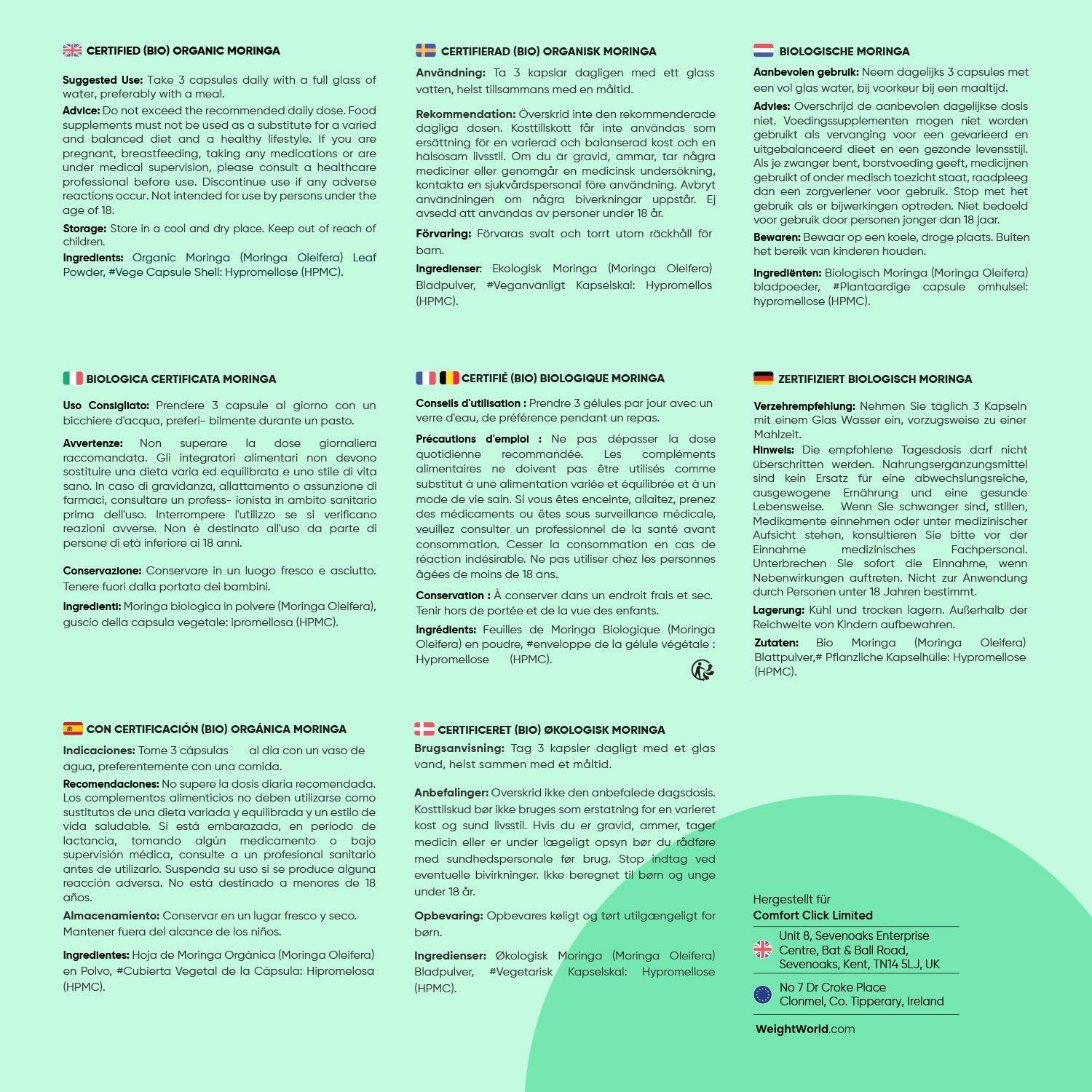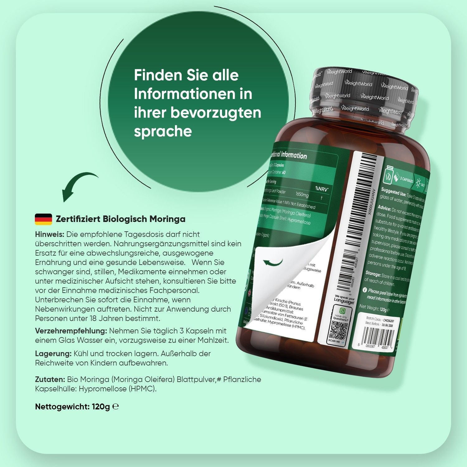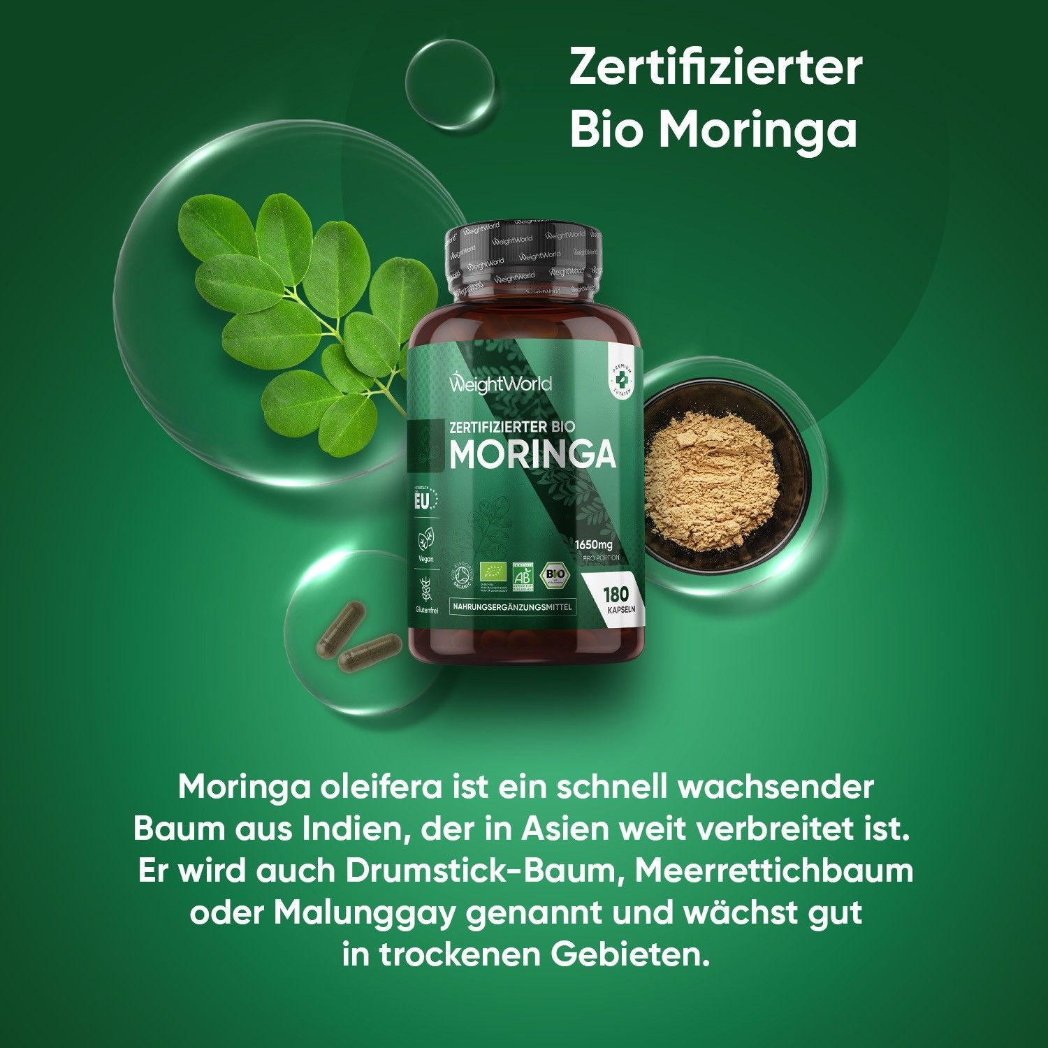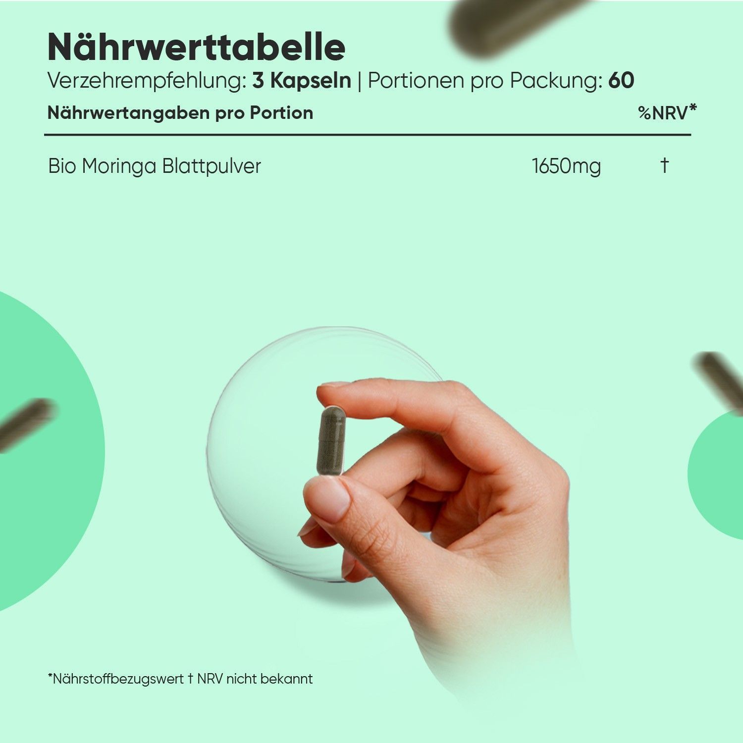 Bio Moringa Kapseln - Hochdosiertes 1650mg Pulver - 2 Packungen