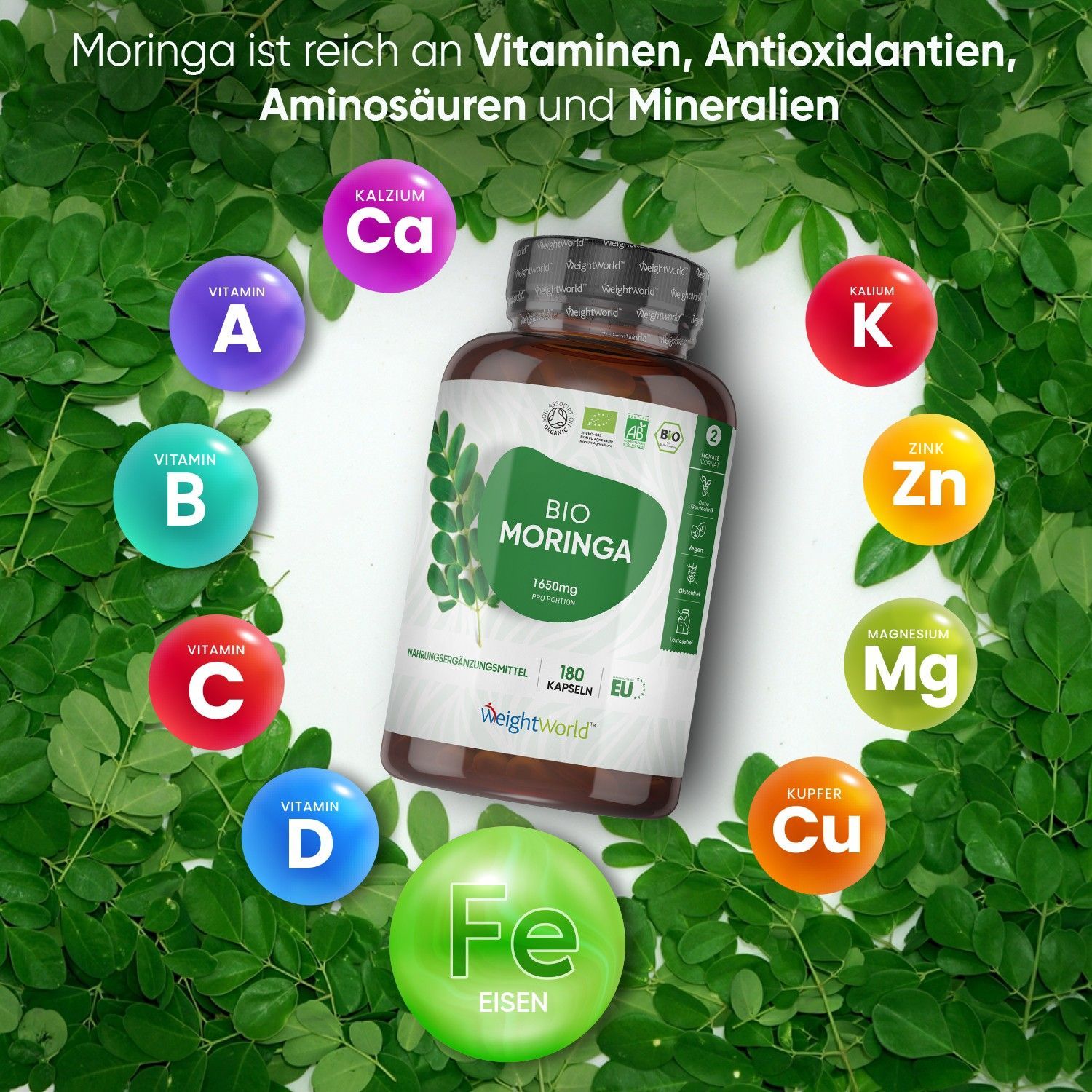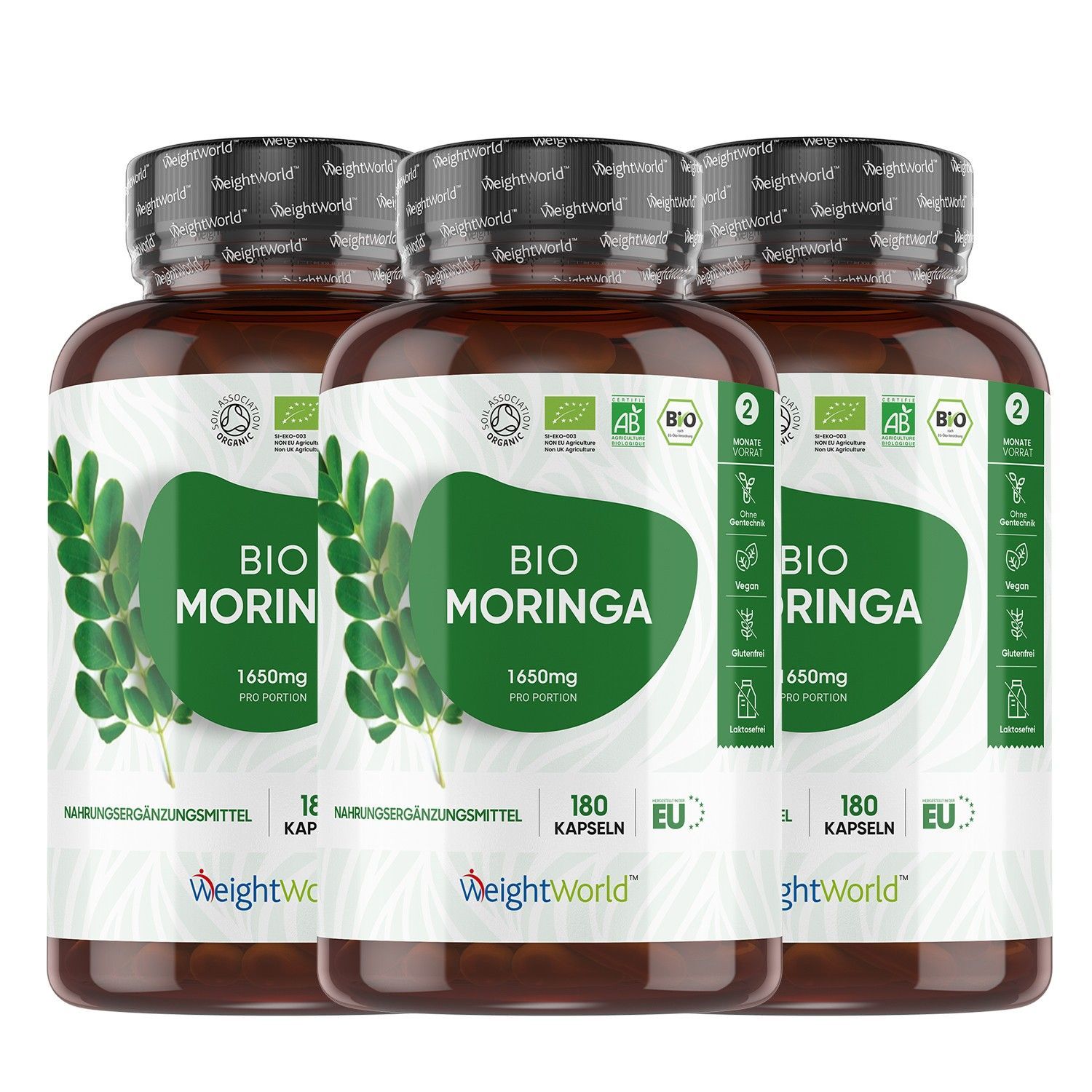 Bio Moringa Kapseln - Hochdosiertes 1650mg Pulver - 3 Packungen