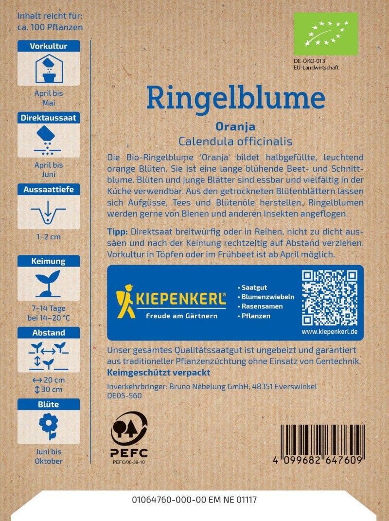 Kiepenkerl BIO Ringelblume Oranja, Robuste Beet- u Schnittblume - essbare Blüten - Höhe