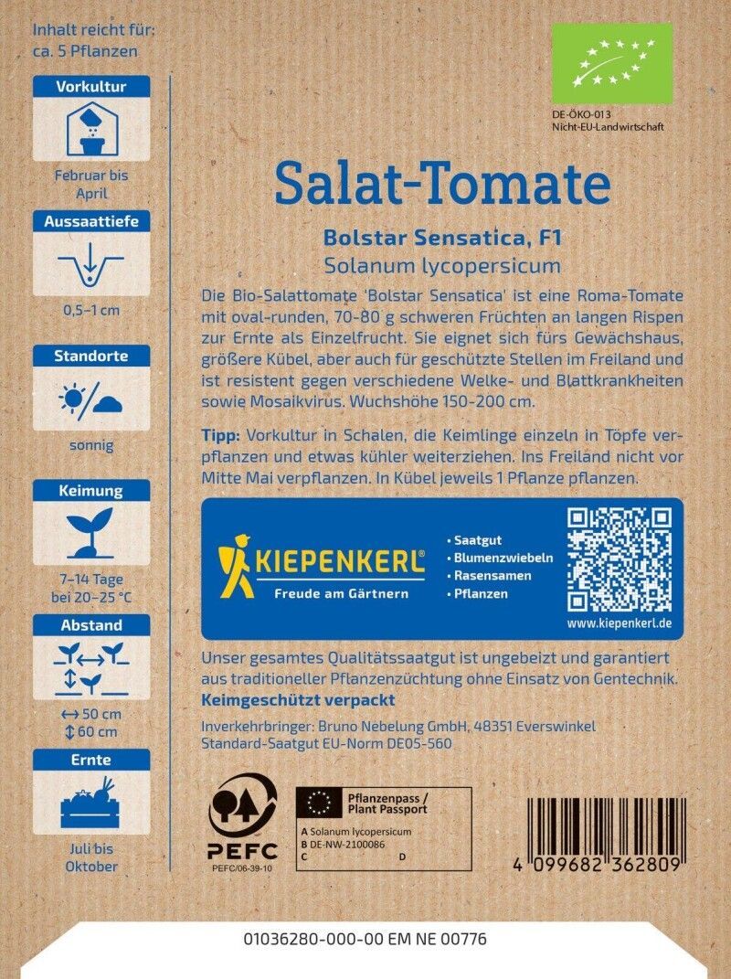 Kiepenkerl BIO Salat-Tomate Bolstar Sensatica, F1, Roma-Tomate - resistent
