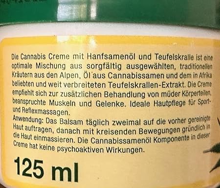 125ml BIO-VITAL Cannabis Hanfcreme Körpercreme mit Teufelskralle