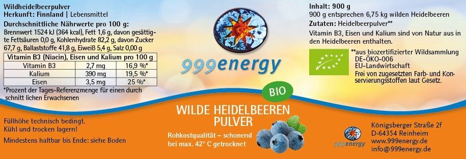 BIO Wilde Heidelbeeren Pulver 900 g Herkunft Kanada