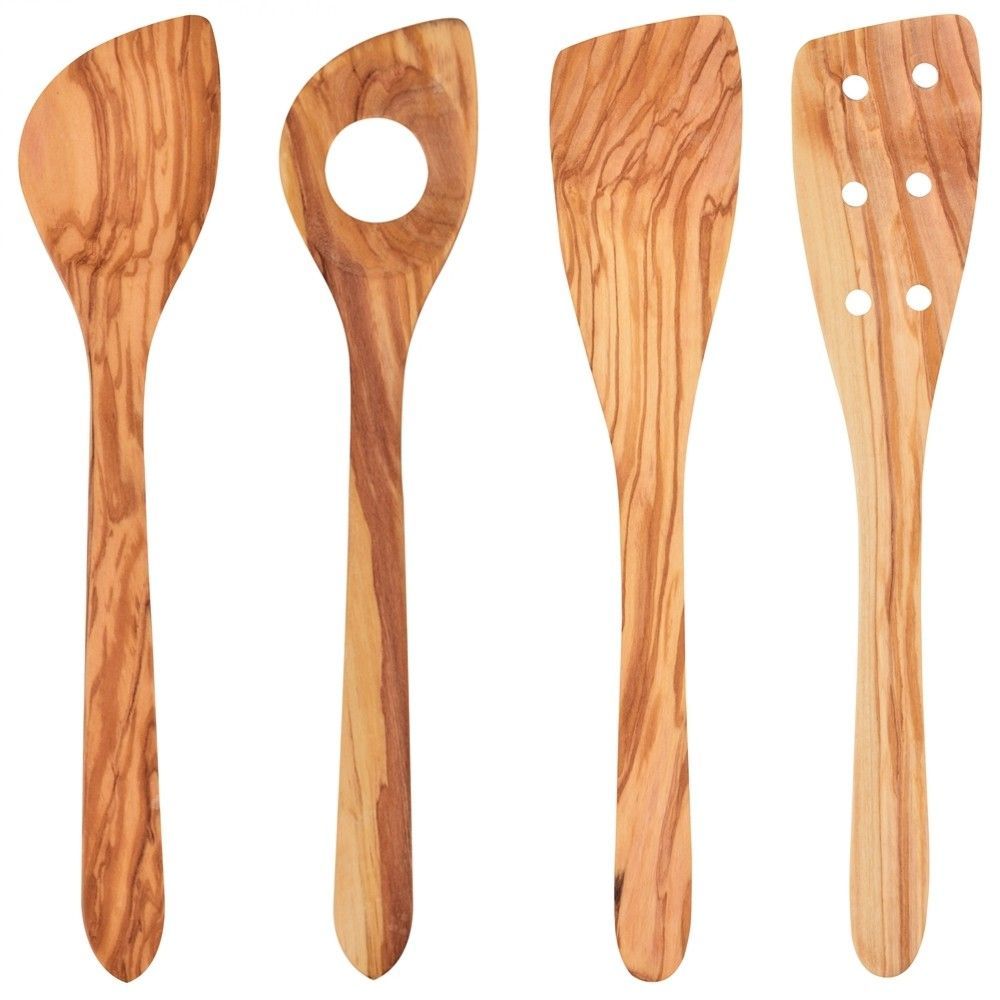 Olivenholz Set mit Kochlöffeln und Wendern von Biodora. Die Olivenholzprodukte von Biodora wachsen aus hochwertigem Olivenholz und werden in Italien gefertigt. Jedes Olivenholzprodukt ist ein natürliches Unikat.