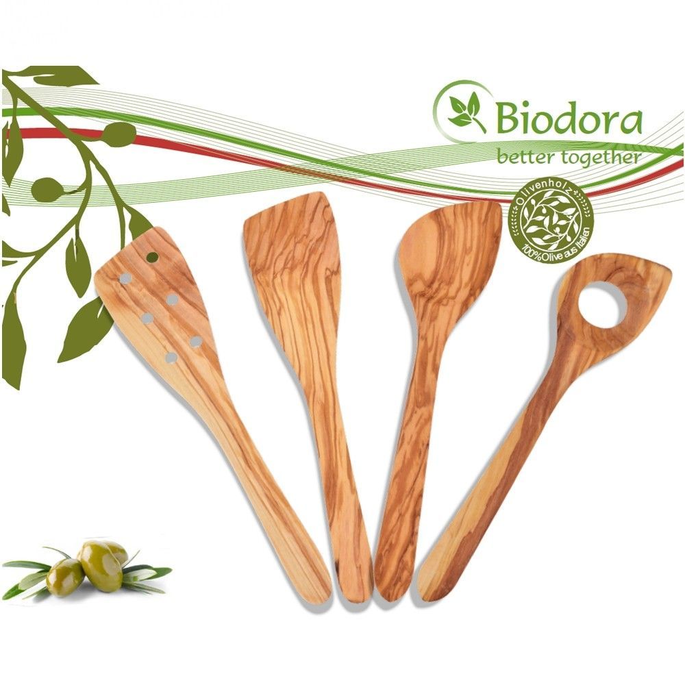 Biodora Olivenholz Set mit Kochlöffeln und Wendern
