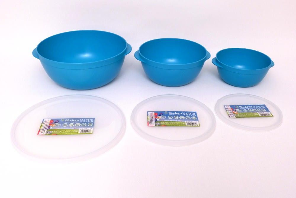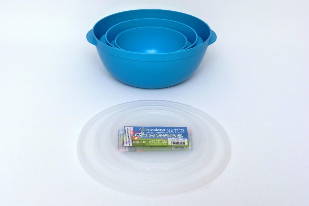 Set Schüsseln aus Biokunststoff von Biodora. Die Schüssel von Biodora ist perfekt zur Aufbewahrung Ihrer Speisen geeignet, da sie sich leicht öffnen und wieder schließen lässt. Sie wird aus Bio-Kunststoff hergestellt und ist damit die hervorragende Alternative für Ihre nachhaltige Küche! Mit sehr dichtem Deckel aus Bio-LDPE.