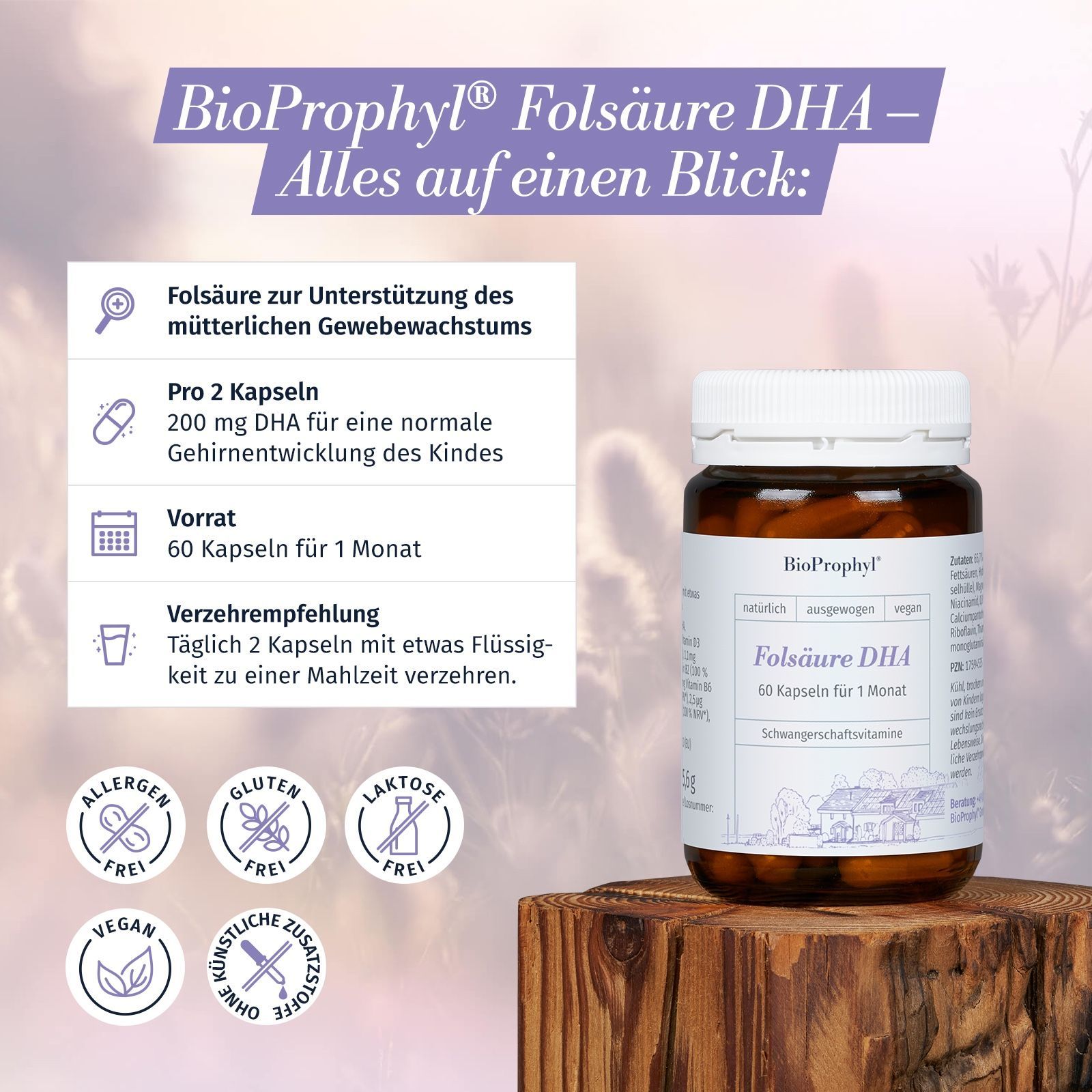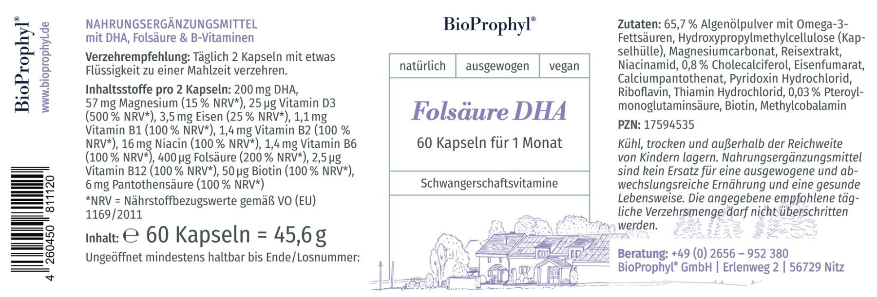 BioProphyl Folsäure DHA | DHA, Folsäure & Vitamin D3 | 60 Kapseln
