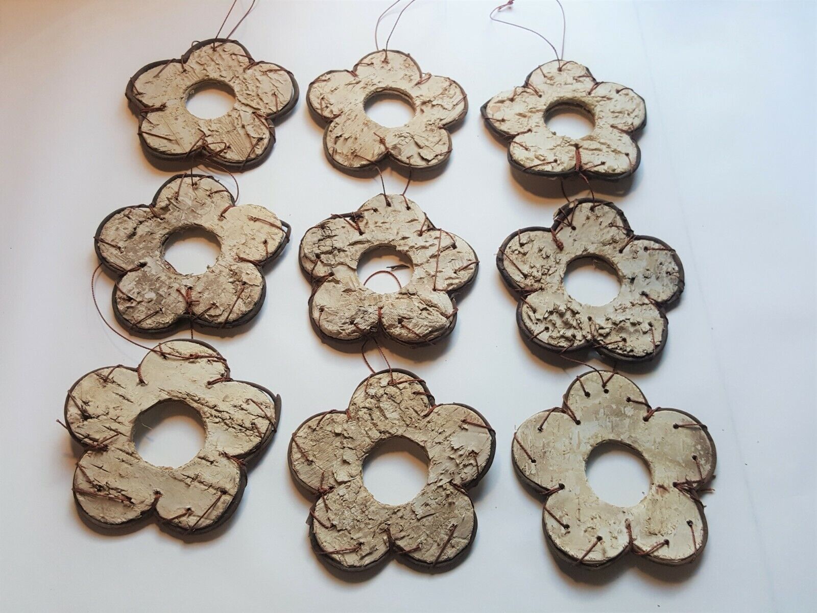 Birken Blumen offen dekohänger stabile wetterfest Birkenrinde Naturholz Ø9cm St.2,10€