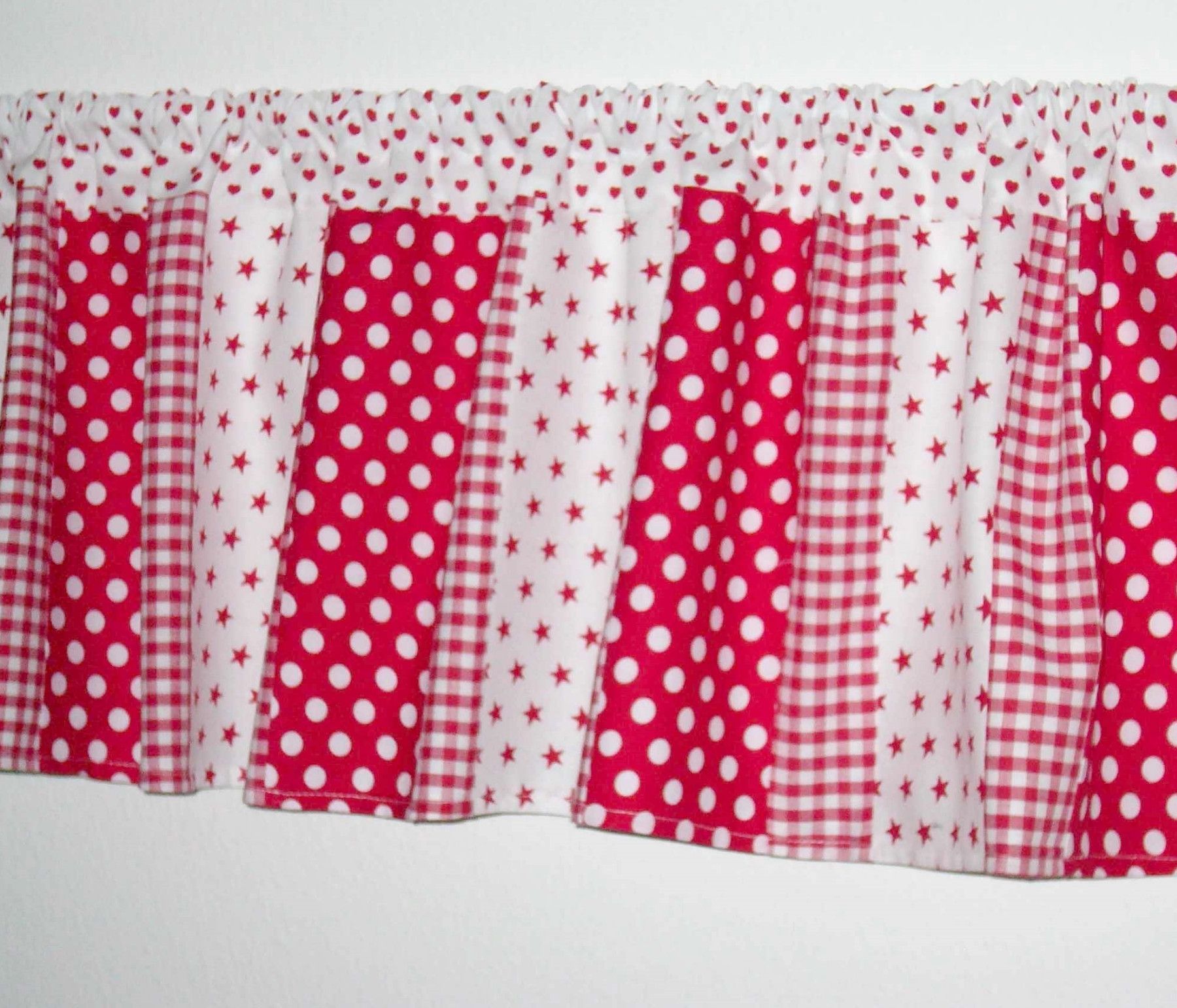 Bistro Gardine im Patchwork Style,rot,weiss,sterne,punkte, Handmade, Unikat Diese Gardine ist ein Einzelstück, da sie von mir selbst entworfen und genäht wurde. 100 % Baumwolle 130 cm breit 29 cm hoch Handmade Produkt Neues Einzelstück Falls du noch Fragen zum Artikel hast, schreibe mir eine Nachricht.