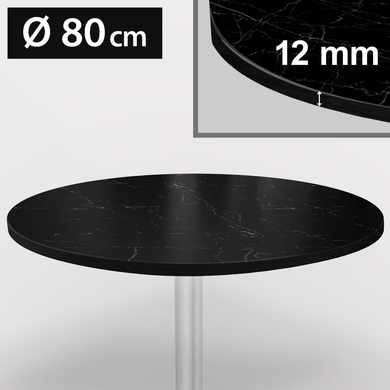 Bistro Terrassen Tischplatte | Ø80cm | Schwarz | 100% HPL | Compact Werzalit Garten