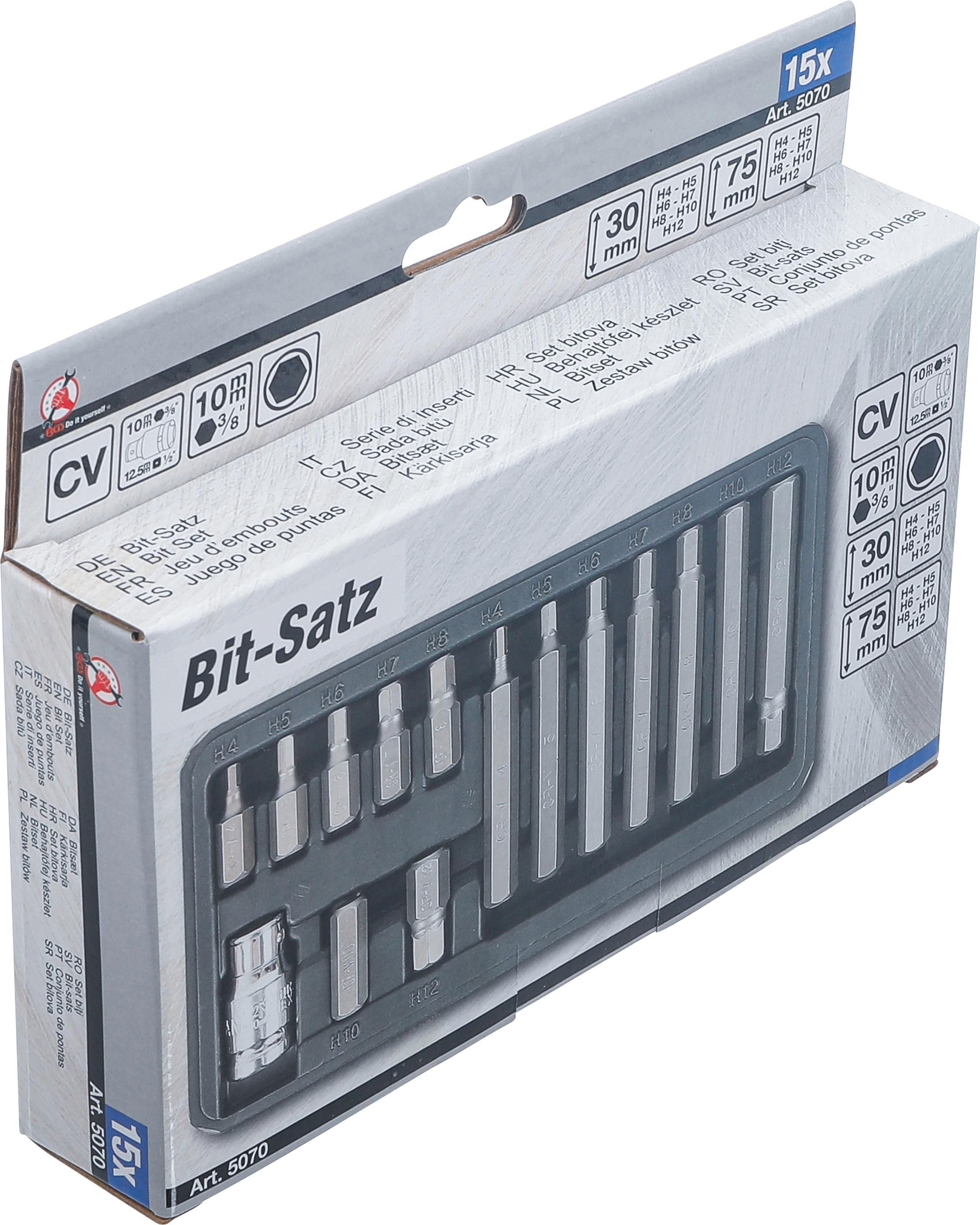 Bit-Satz | Antrieb Außensechskant 10 mm (3/8") | Innensechskant 15-tlg