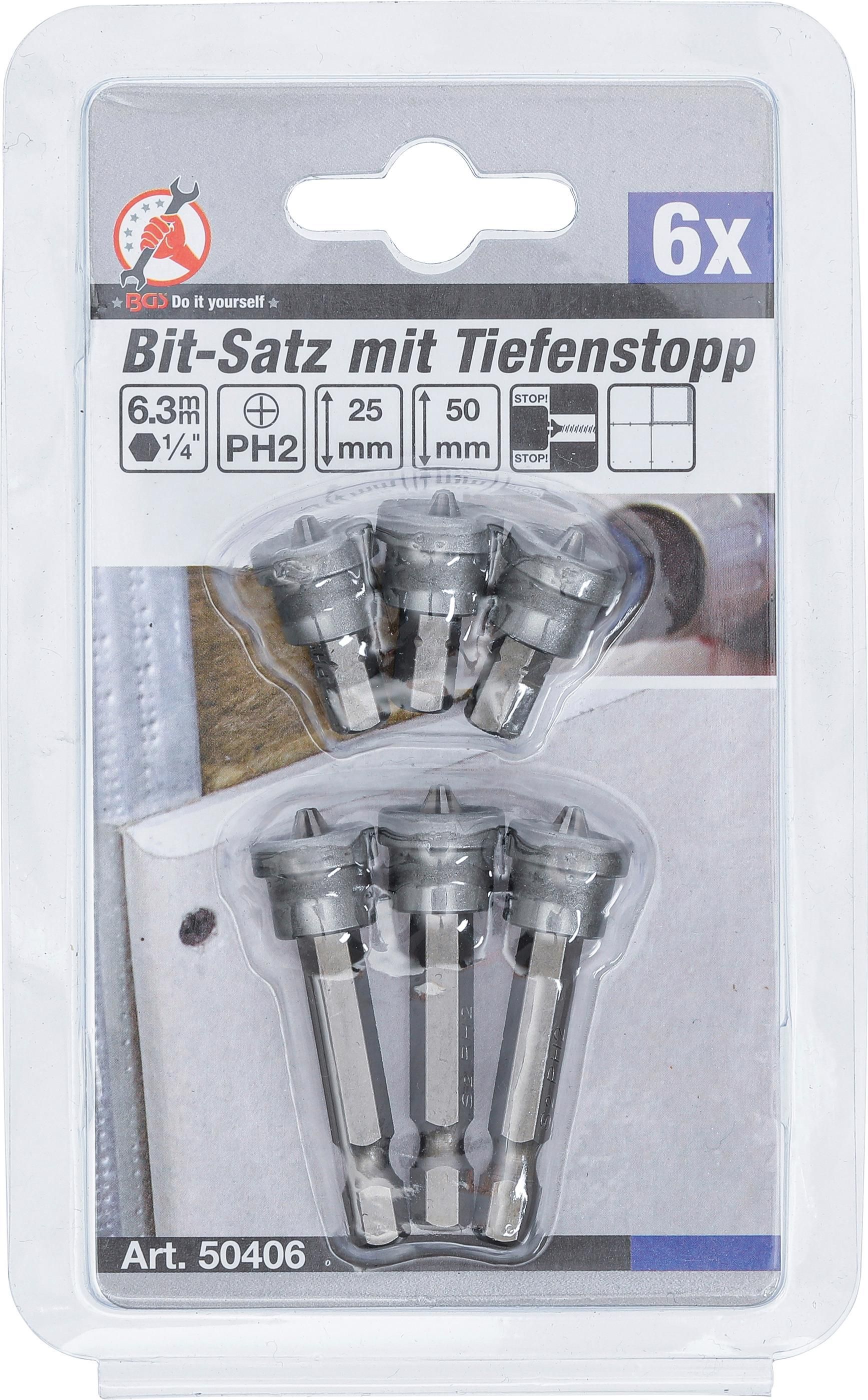 Bit-Satz mit Tiefenstopp | für Gipskartonplatten | Antrieb Außensechskant 6,3 mm (1