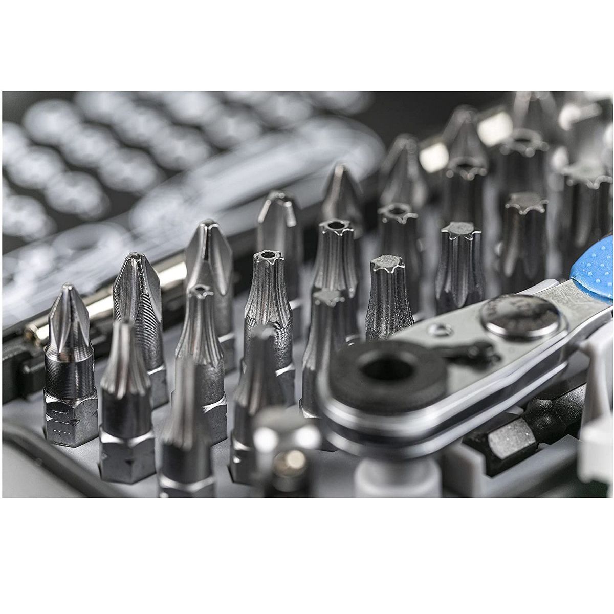 • Ratschen-Bithalter und Steckschlüsseleinsätze 45 tlg