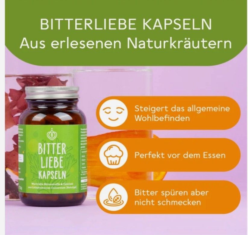 BitterLiebe® Bitterstoffe Kapseln 90 Stk. - Bitterkräuter, Mariendistel, Löwenzahn, Artischocke hochdosiert - Bitter tropfen in Kapselform - Rezeptur nach Hildegard von Bingen Info zu diesem Artikel Euro HOCHDOSIERTE WIRKSTOFFE: 90 Kapseln mit einer kraftvollen Kombination aus Calcium, Mariendis