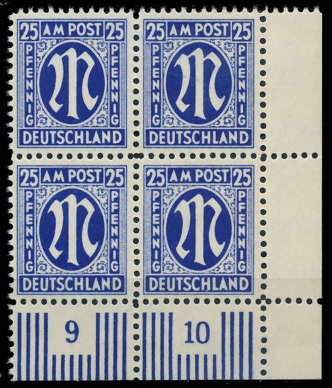 BIZONE AM-POST Nr 28Cz postfrisch Viererblock ECKE-URE X81E54A