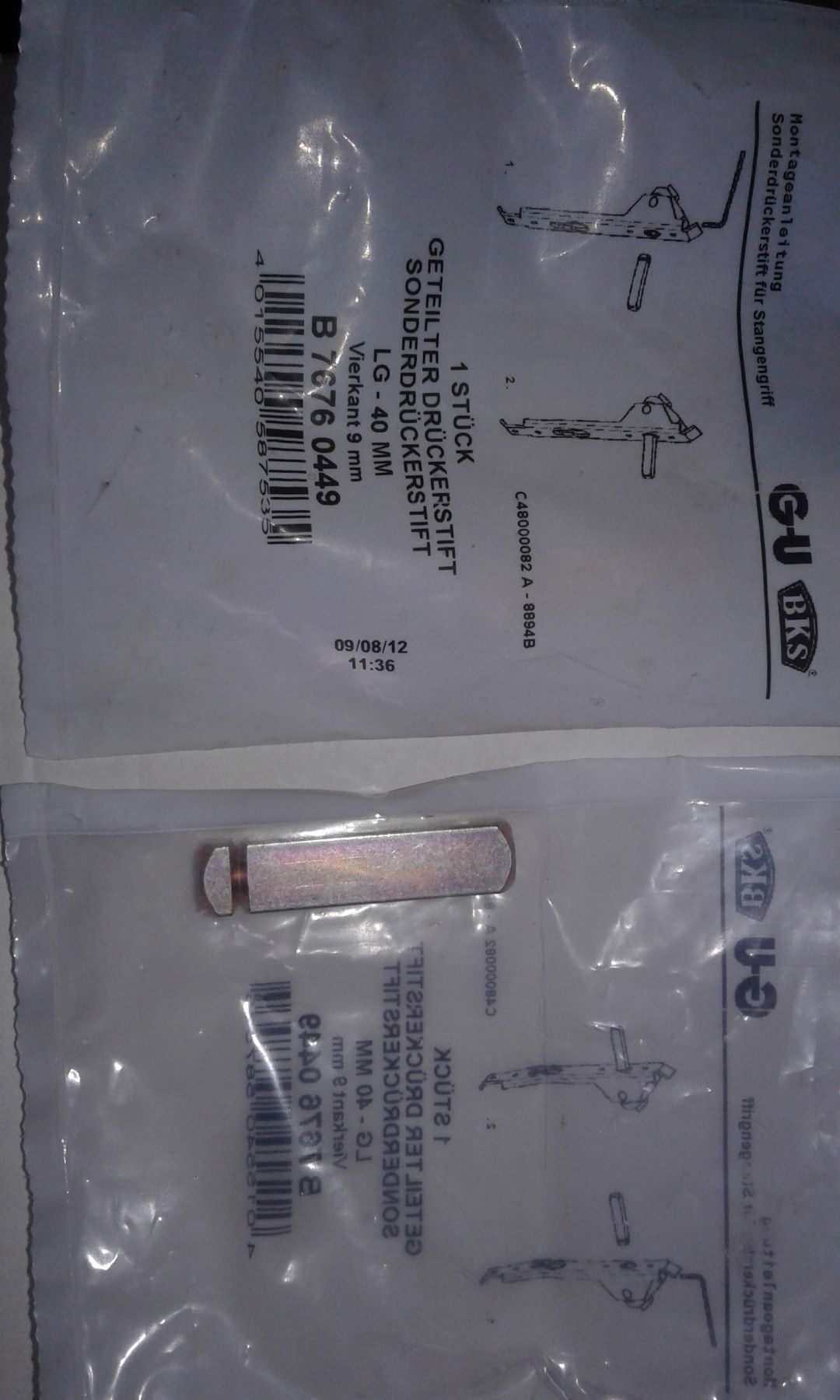 BKS Drückerstift einseitig für Standflügel 7676, 40 mm, Stahl verzinkt