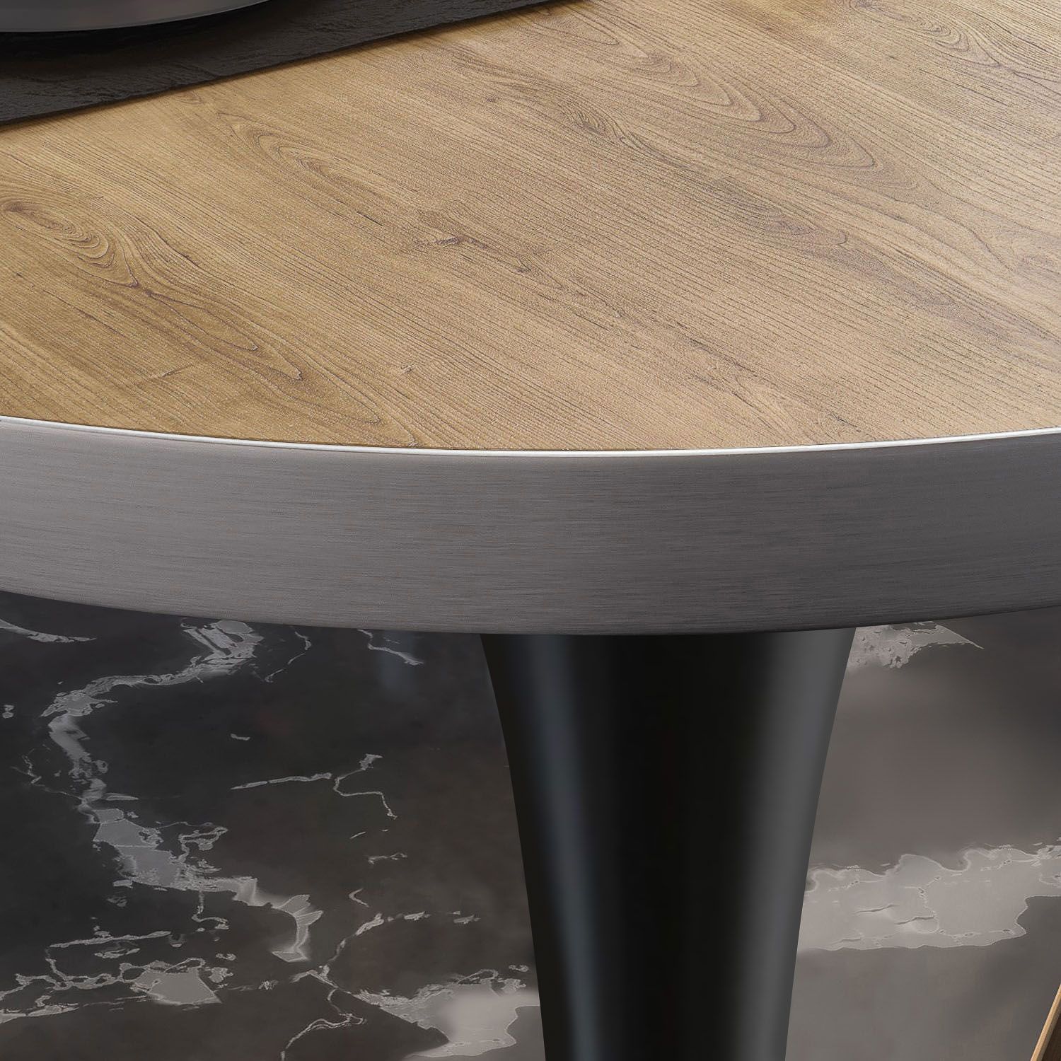 BL | Bistrotisch | Ø: 70 x 76 cm | Edelstahl Rand | Eiche / Schwarz | Rund | Bistro