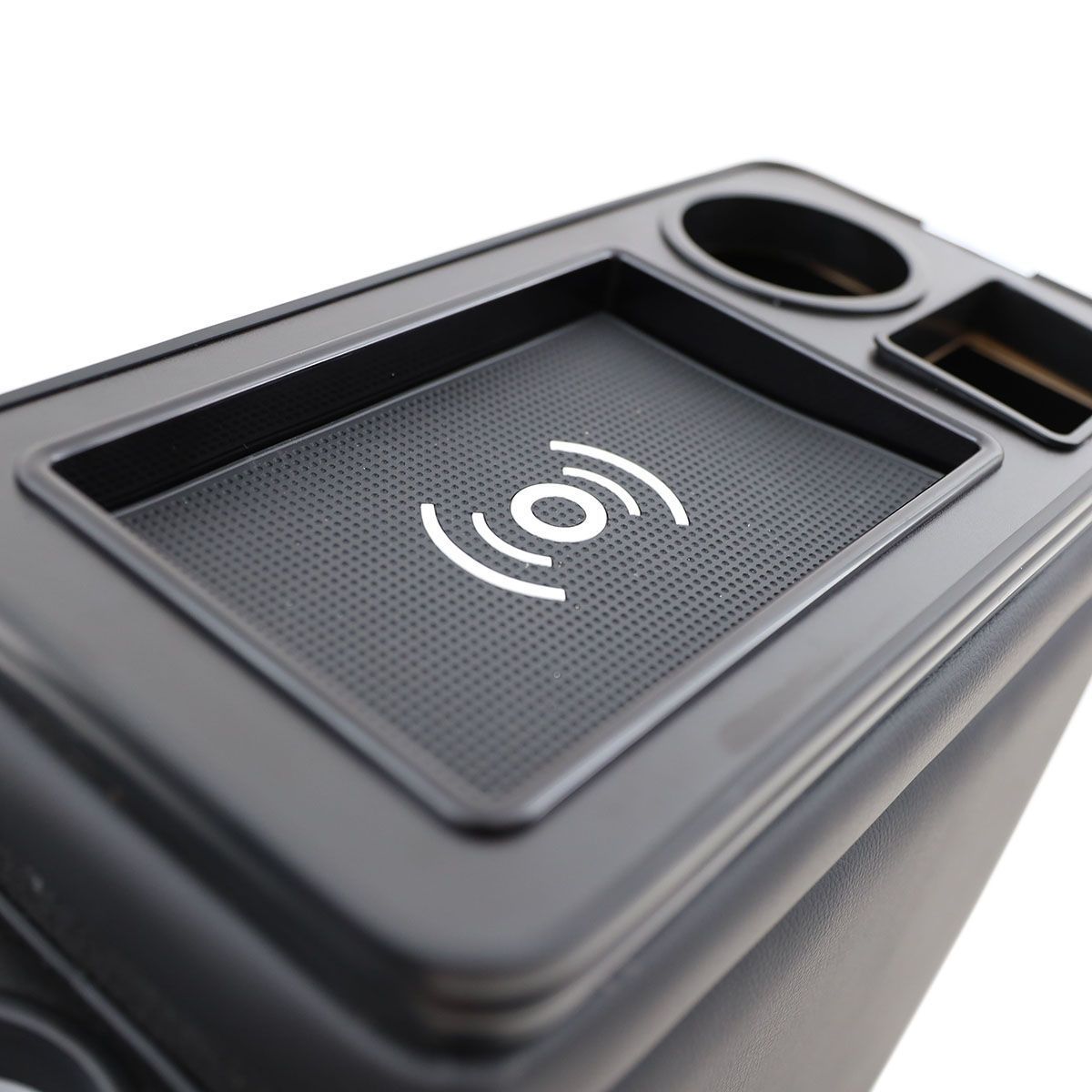 Black Edition Staufach Mittelkonsole Ablage für Opel Vivaro 14-19 mit RGB Farbwechsel-LED Beleuchtung, USB und Induktions-Ladestation
