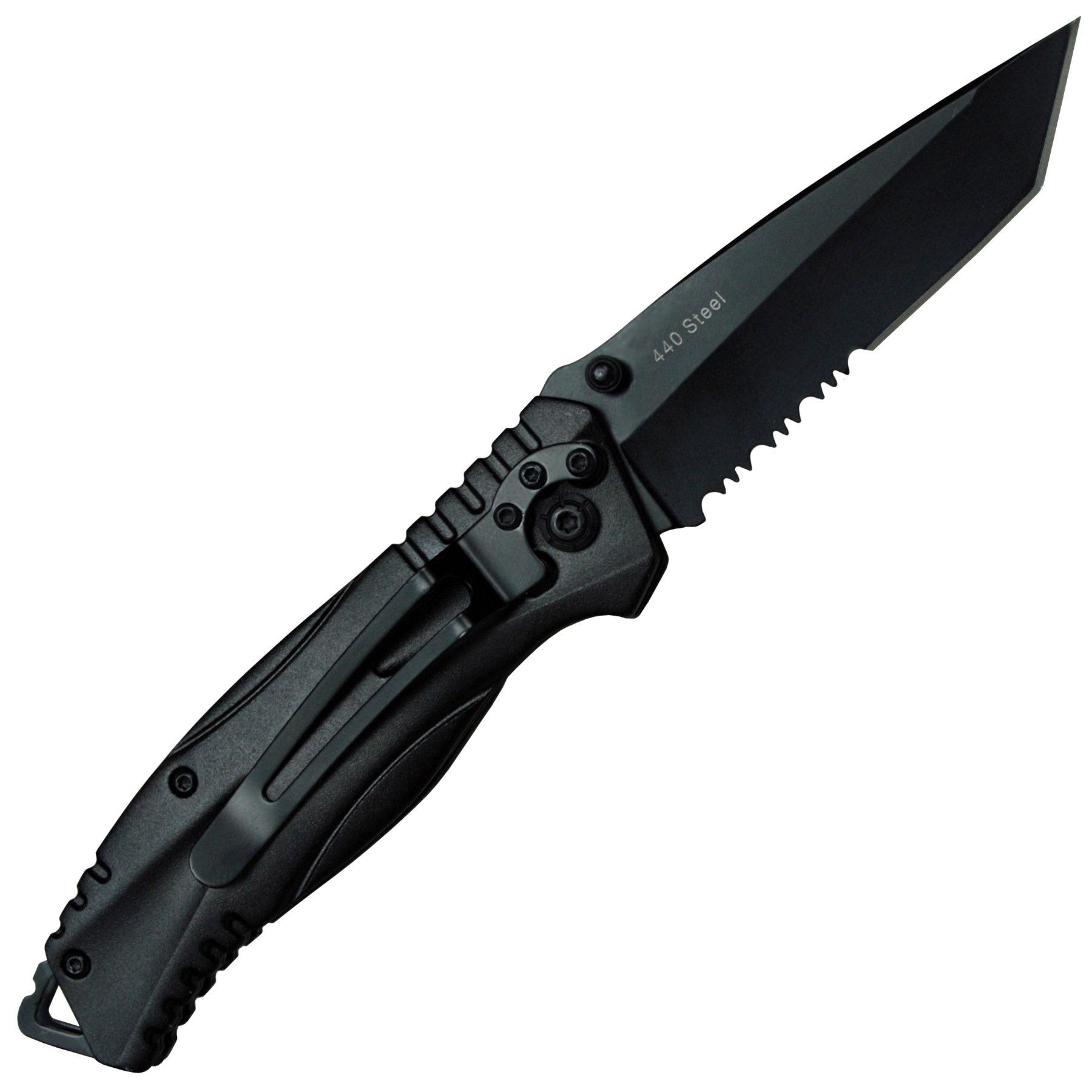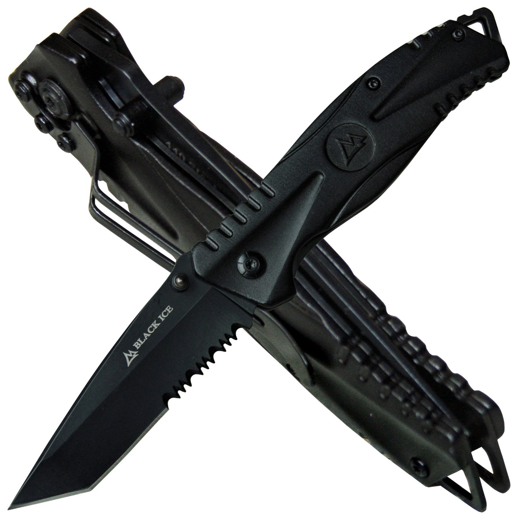 Black Ice Einhandmesser One Taschenmesser mit Tantoklinge Fangriemen Gürtelclip