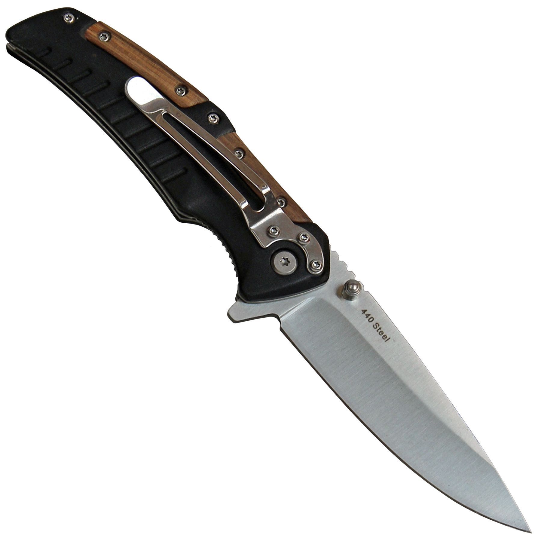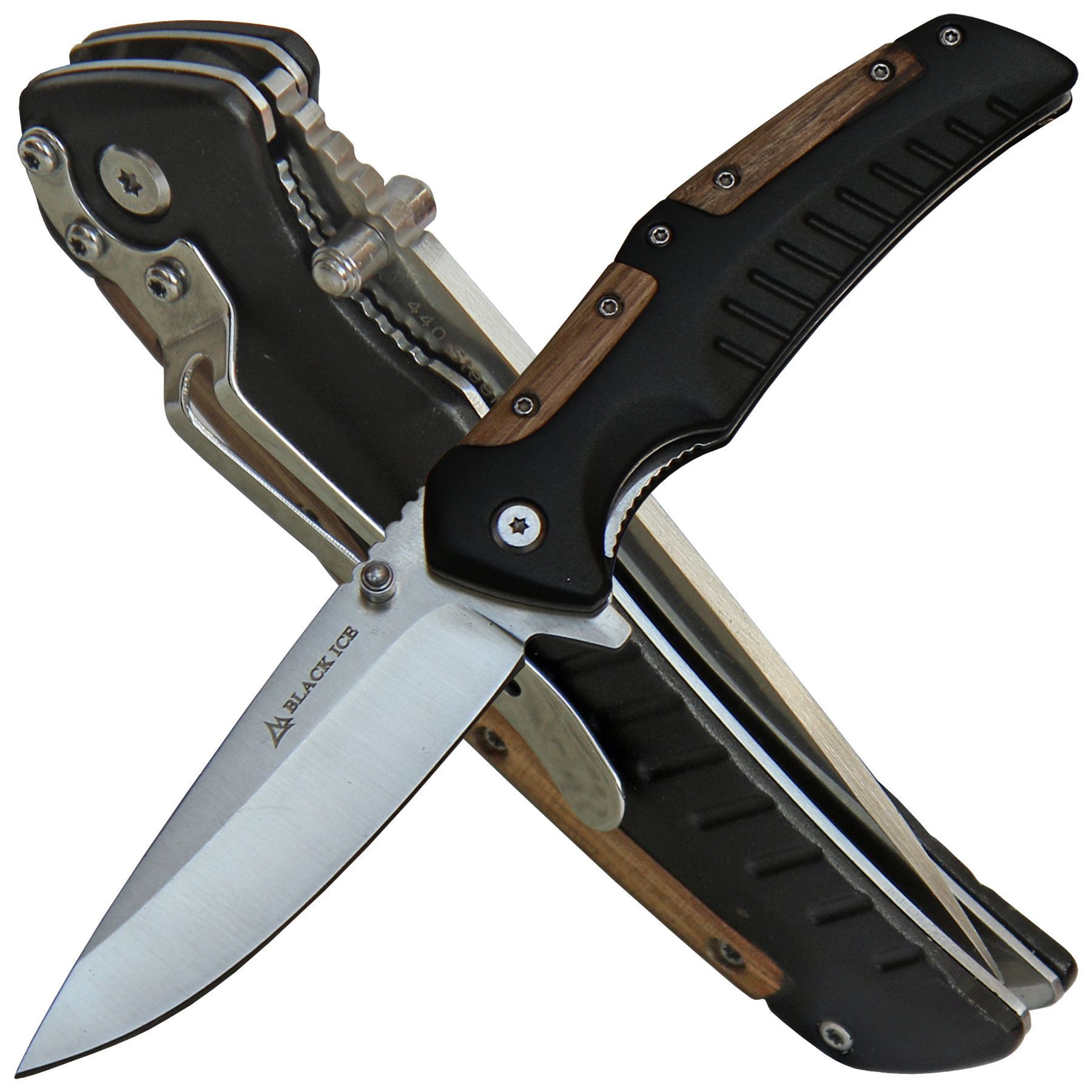 Black Ice Taschenmesser Blackwood Einhandmesser Griff mit Holzeinlage und Clip