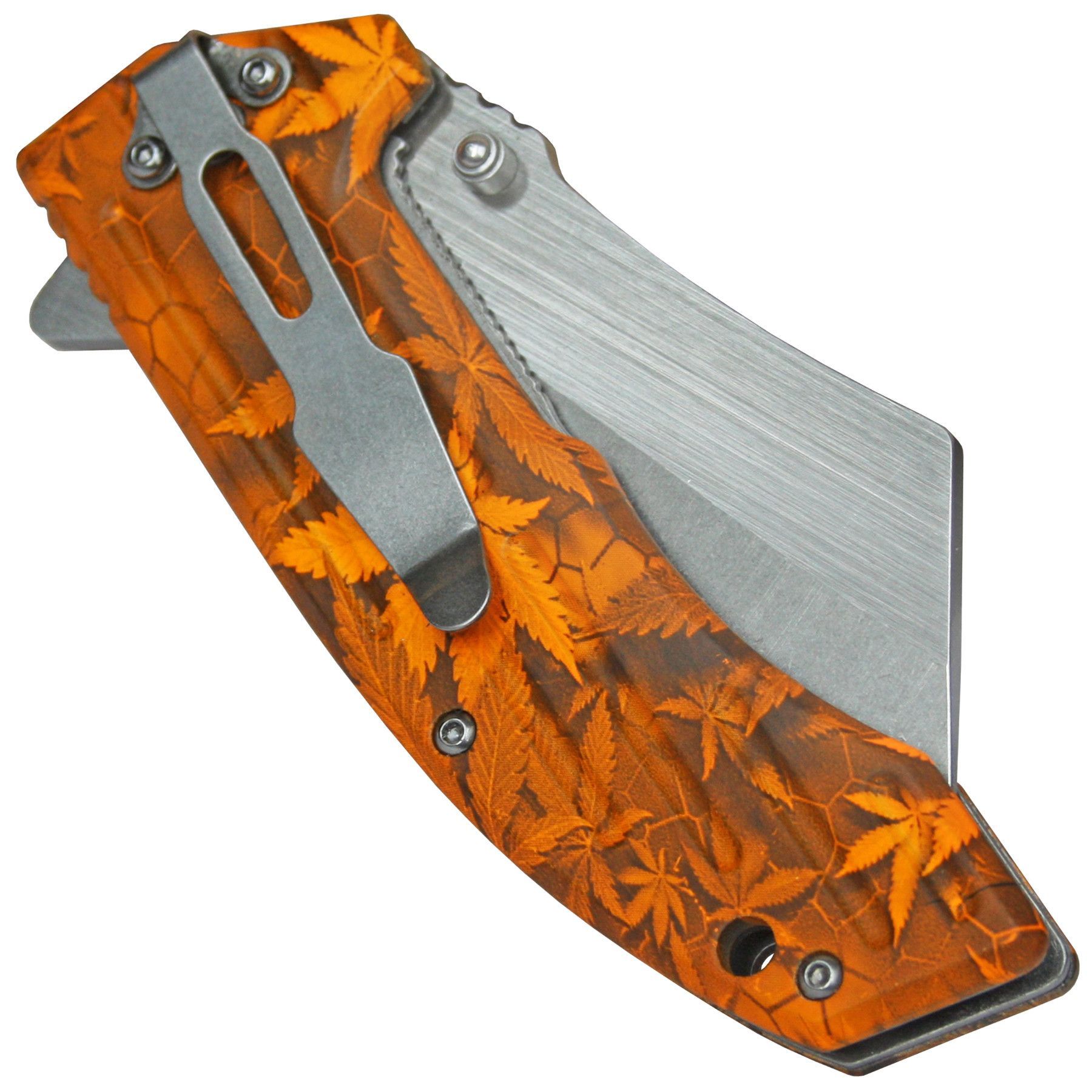 Black Ice Taschenmesser "THC Orange" Wharncliffe Klinge, Gürtelclip, Fangriemen