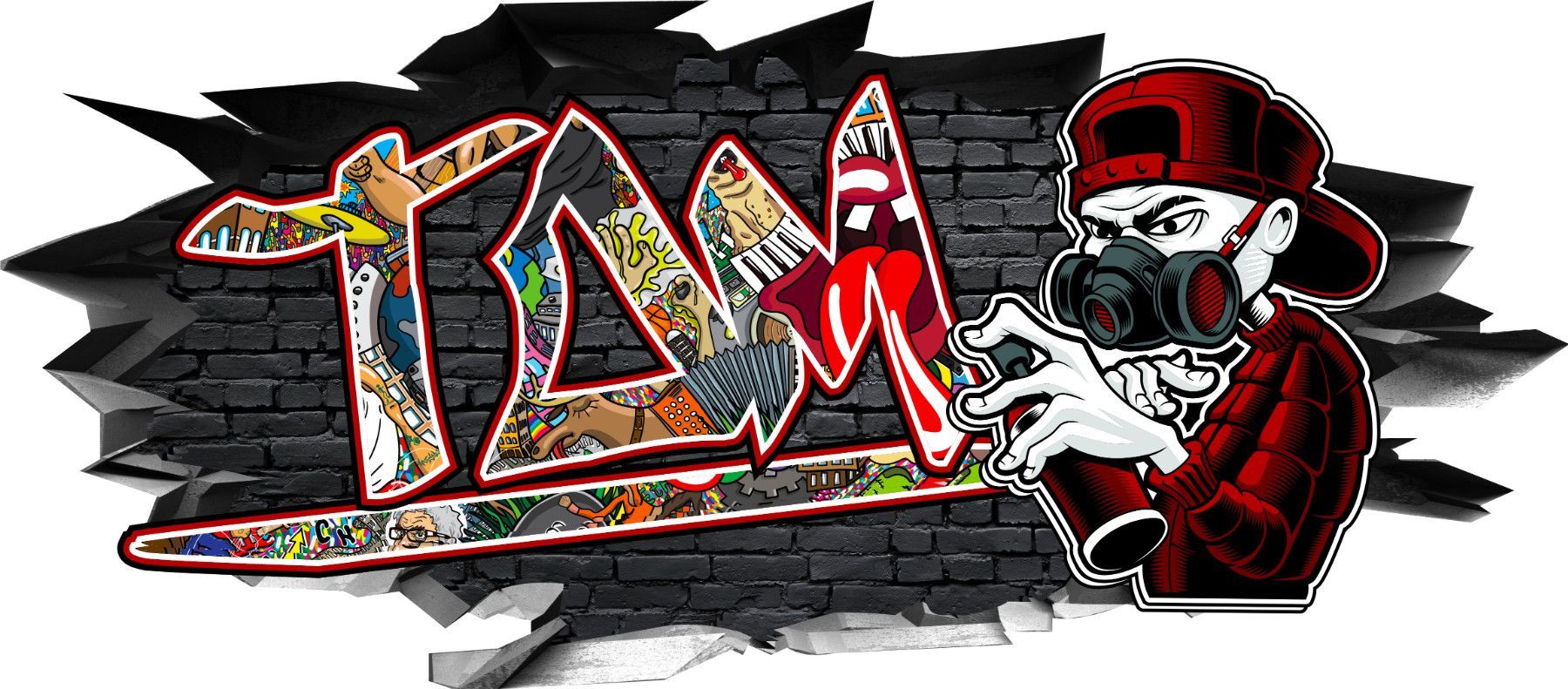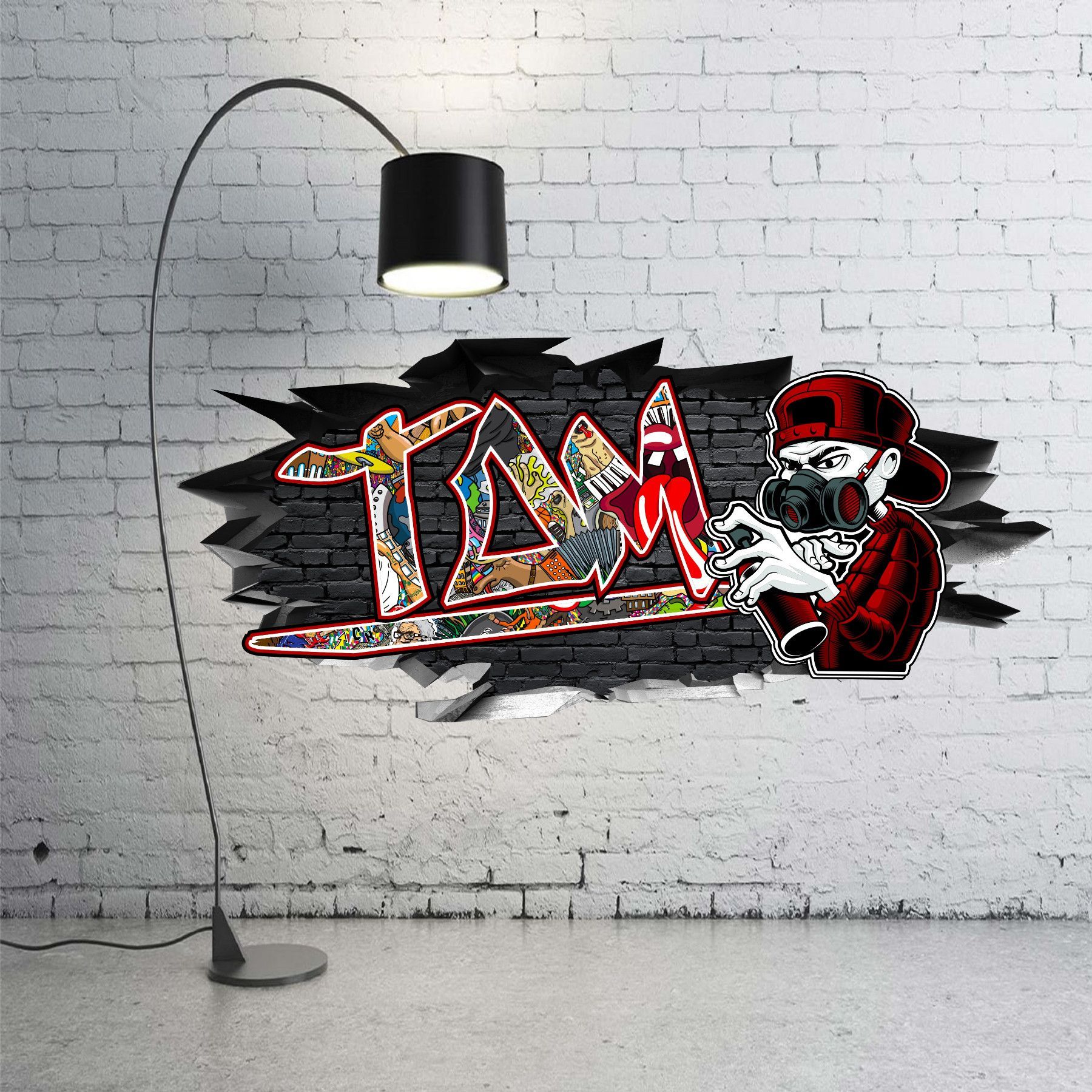BLACK LABEL GRAFX Wandtattoo Aufkleber Graffiti Jungen Tom 3D
