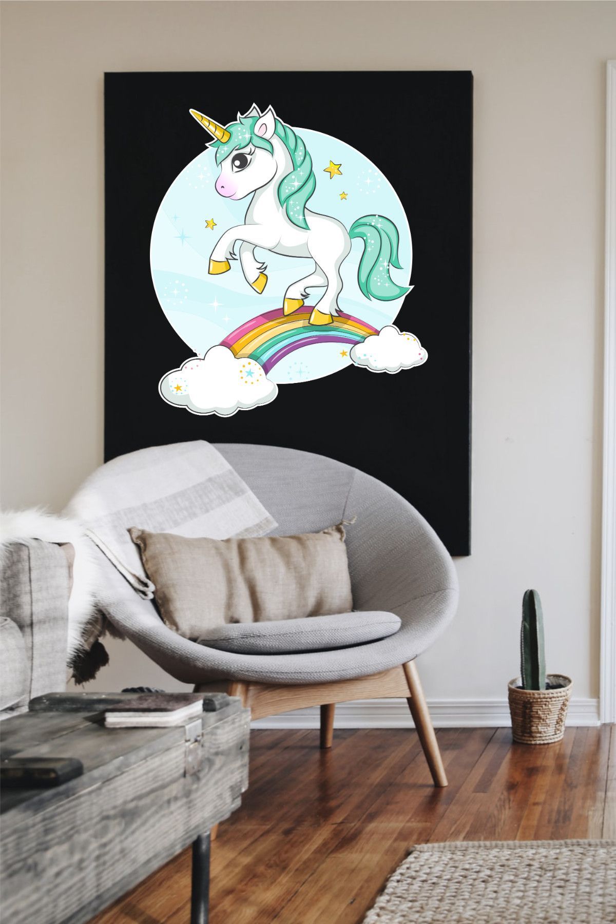 BLACK LABEL GRAFX Wandtattoo Aufkleber WallArtML181 Einhorn Kinderzimmer 3D