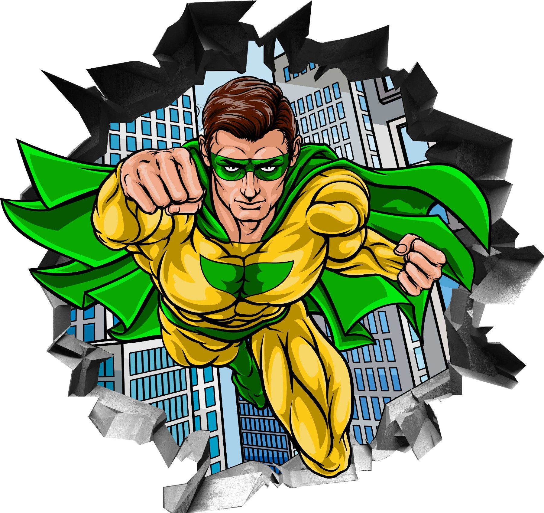 BLACK LABEL GRAFX Wandtattoo Aufkleber WallArtML195 Mauerloch Superheld 3D