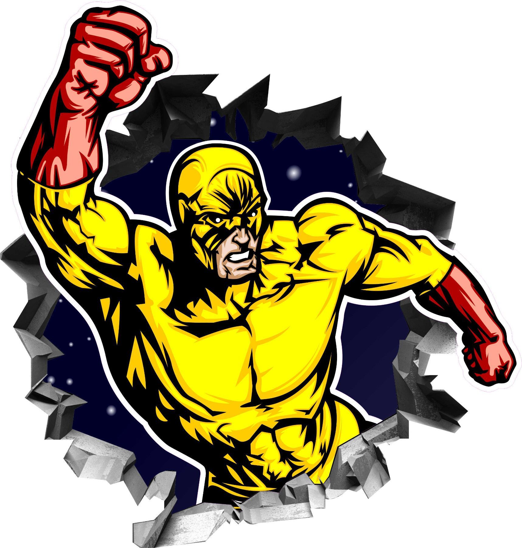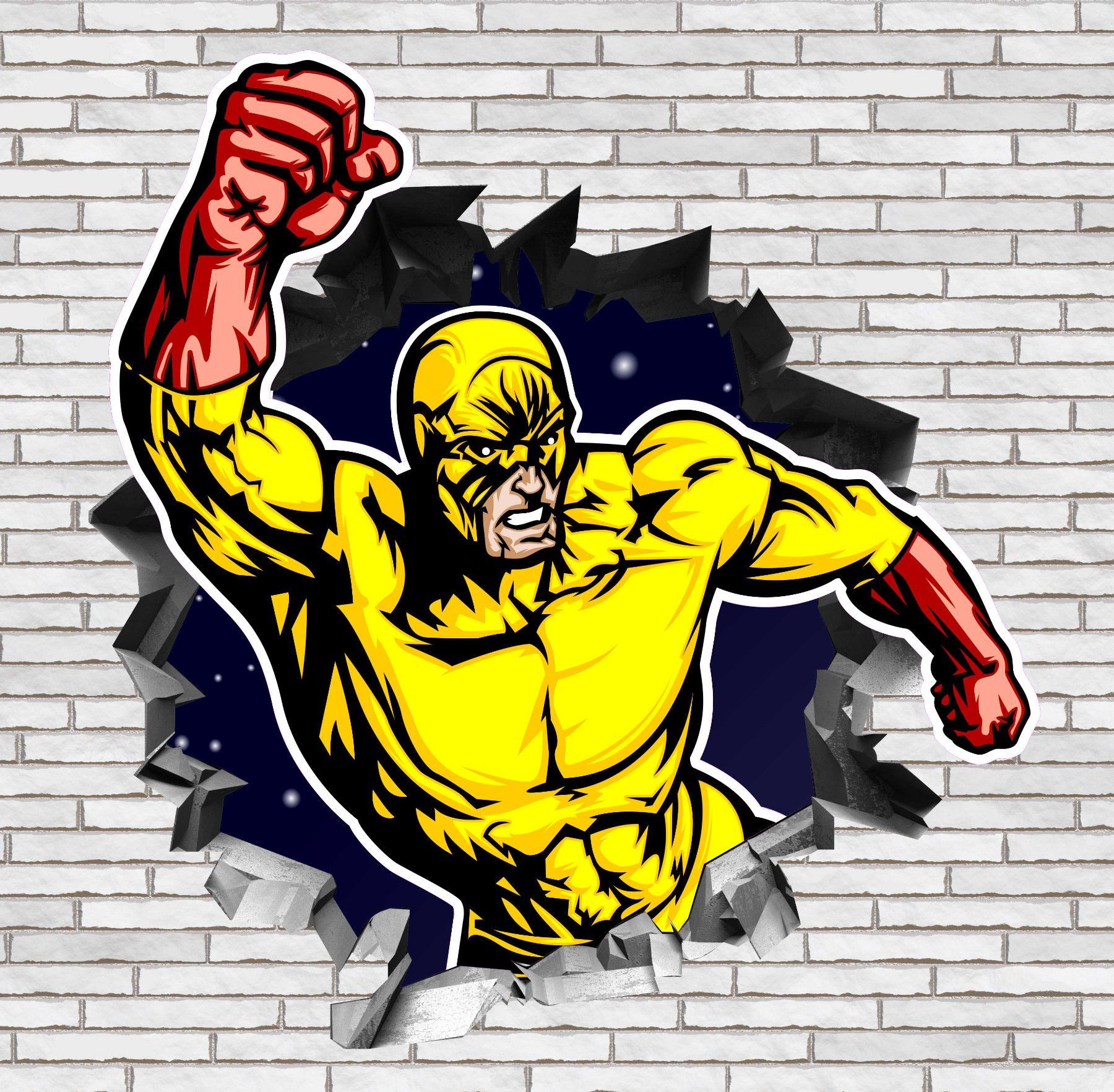 BLACK LABEL GRAFX Wandtattoo Aufkleber WallArtML206 Superheld Mauerloch 3D