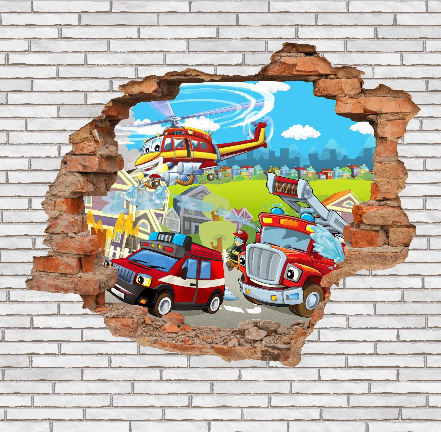 BLACK LABEL GRAFX Wandtattoo Aufkleber WallArtML224 Mauerloch Feuerwehr 3D