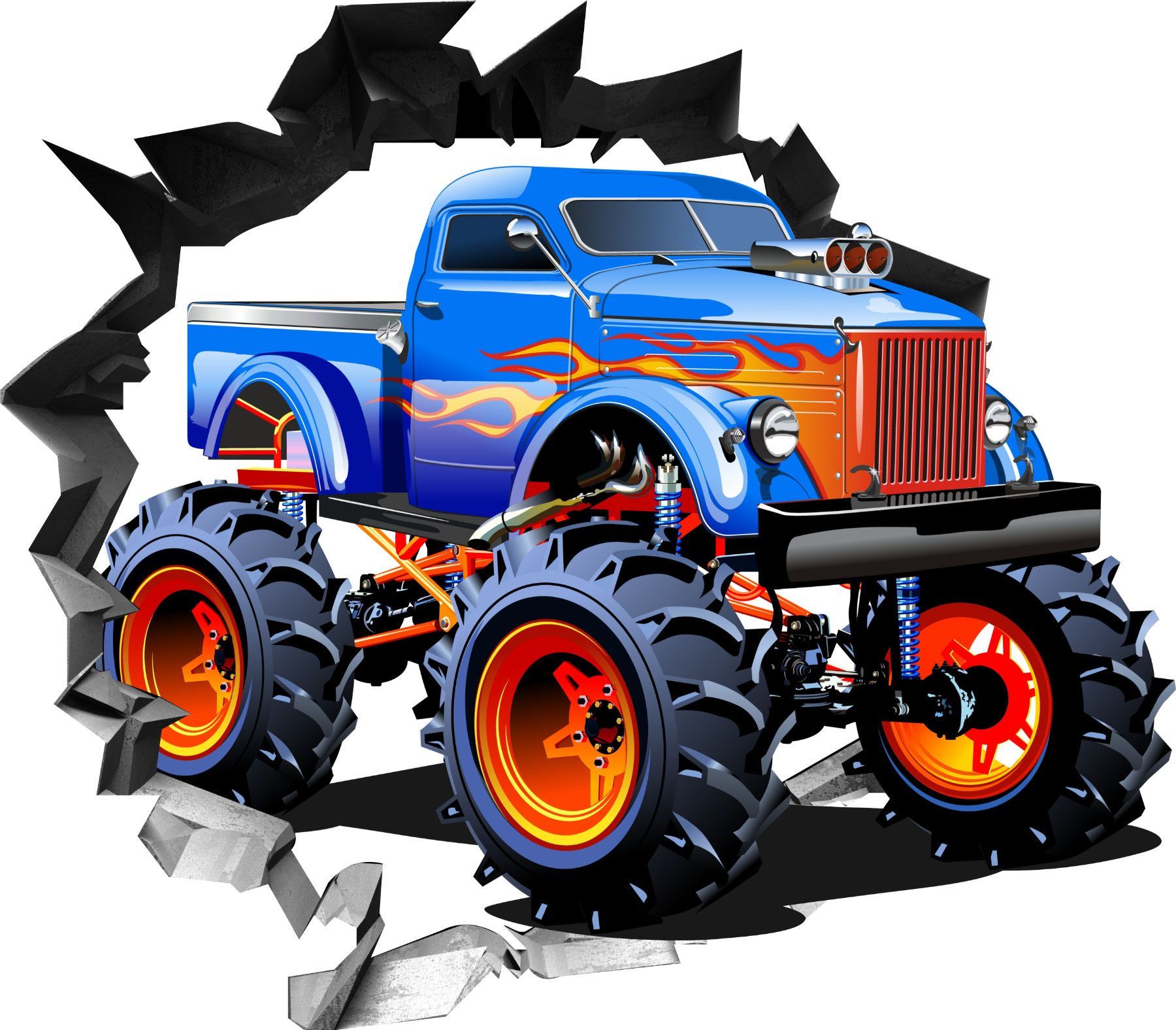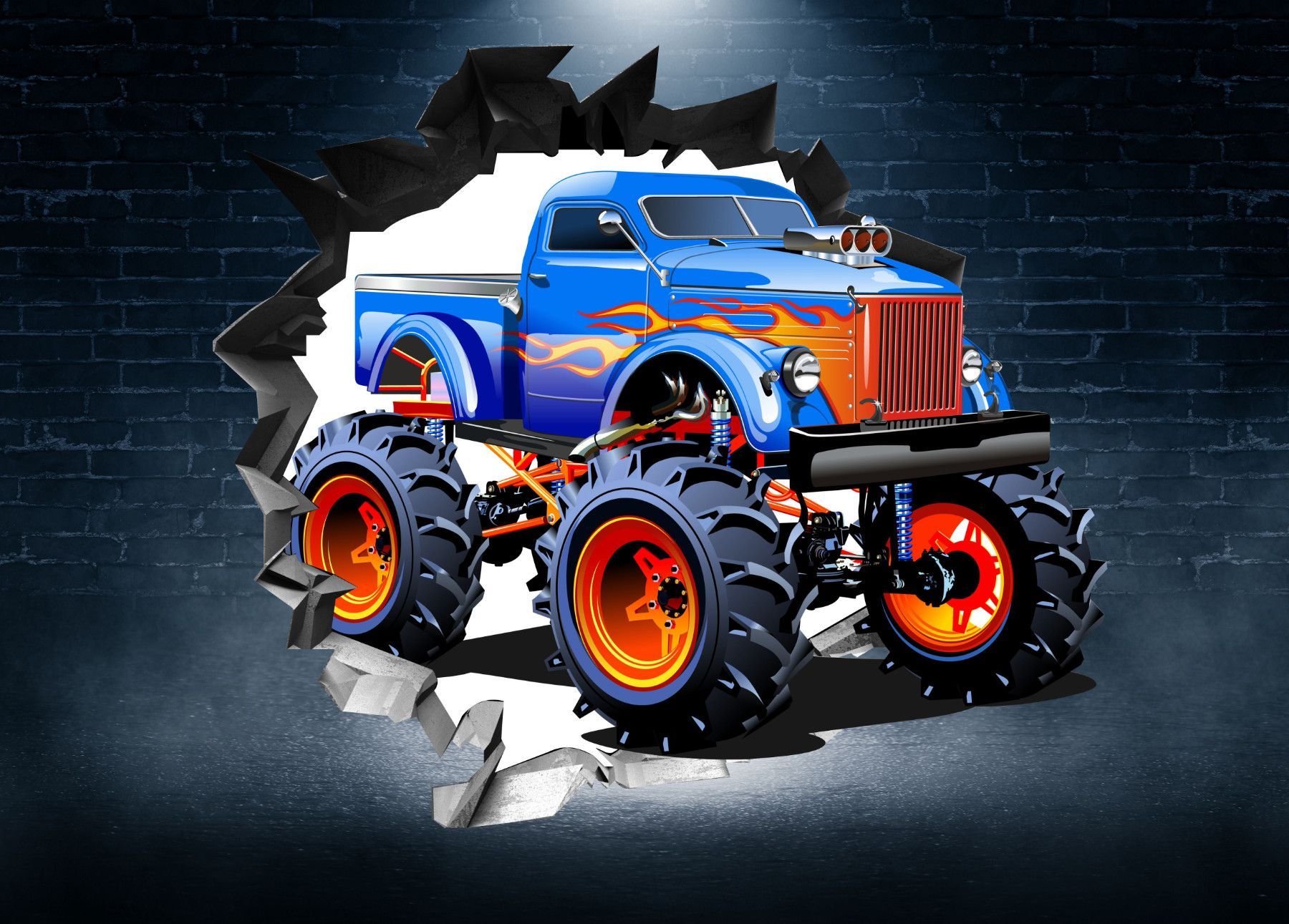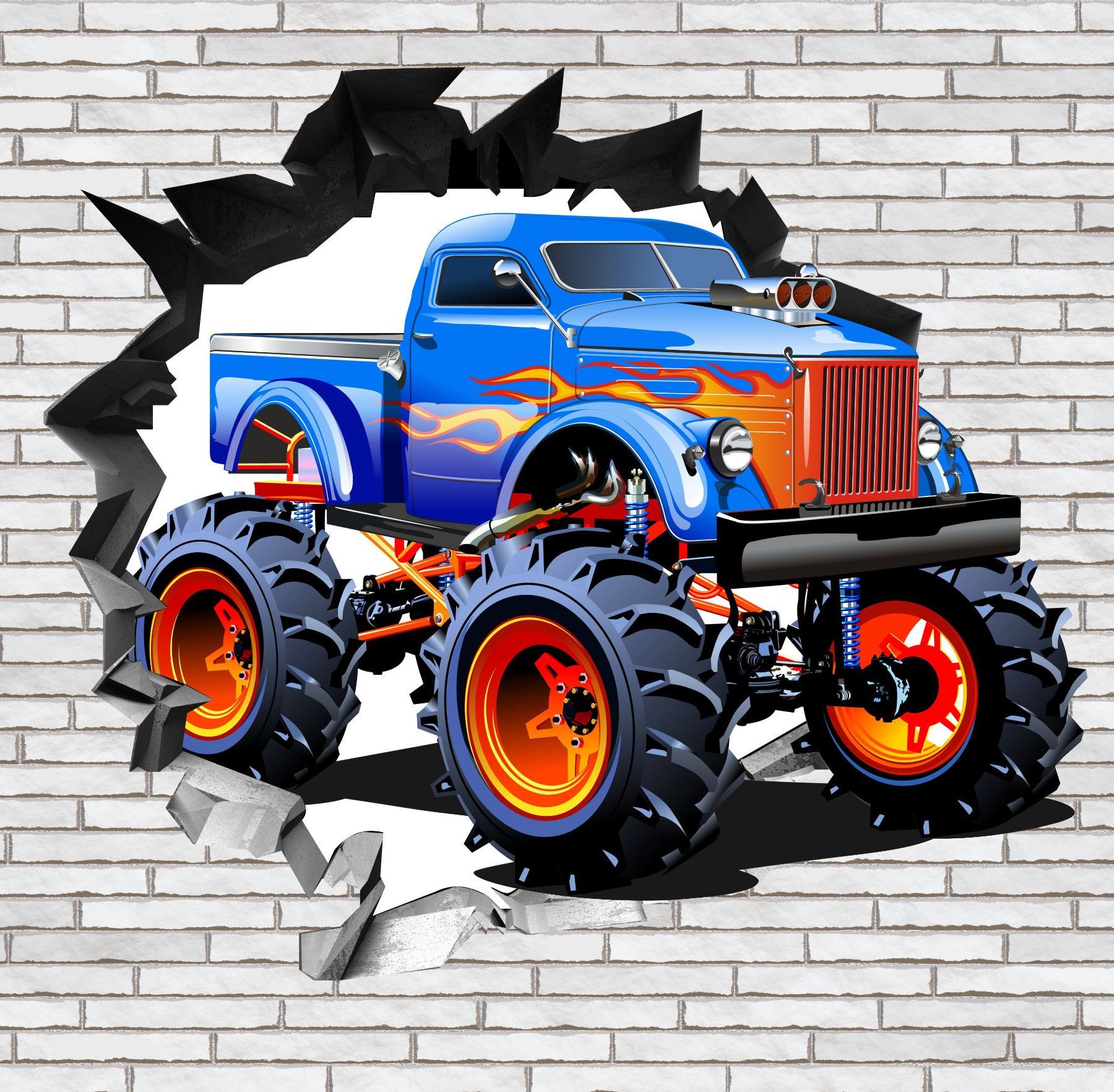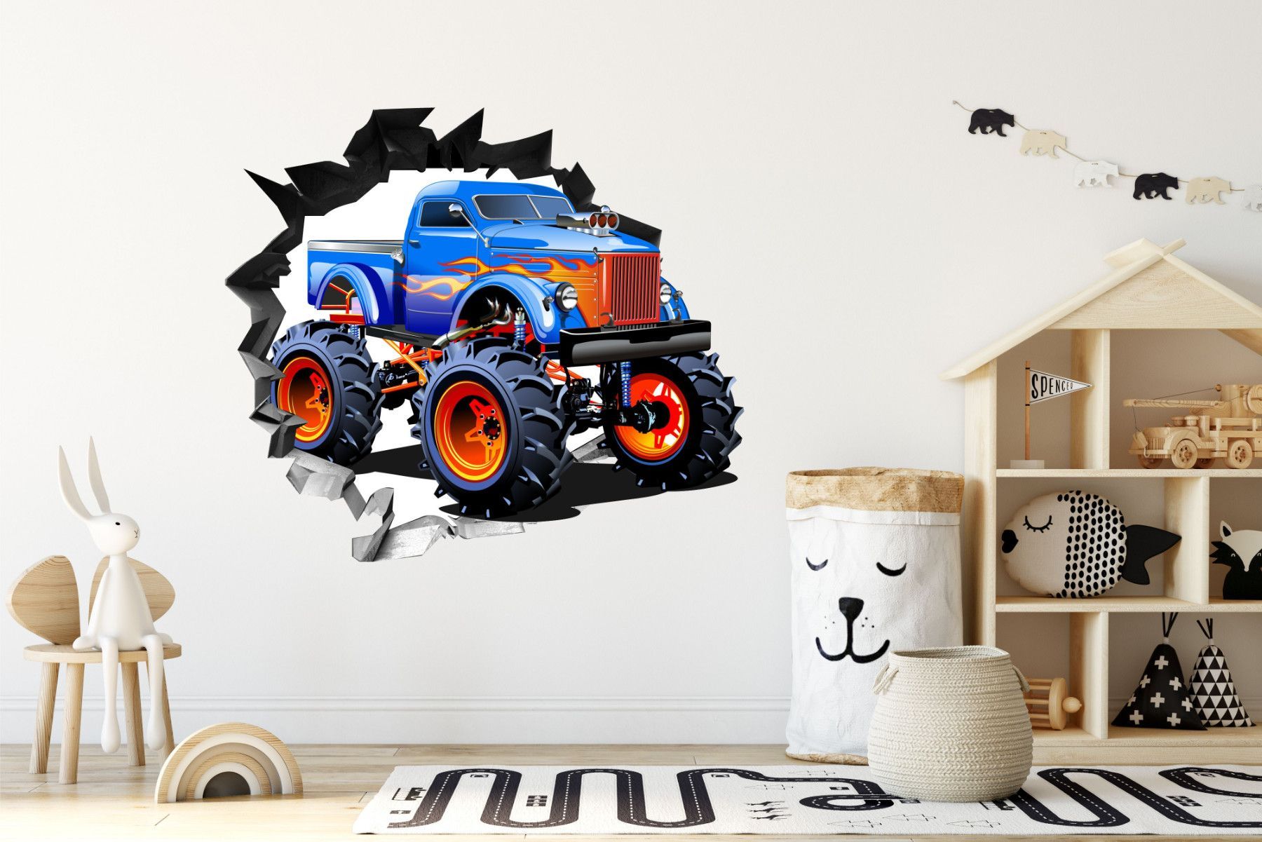 BLACK LABEL GRAFX Wandtattoo Aufkleber WallArtML280 Mauerloch Monstertruck 3D