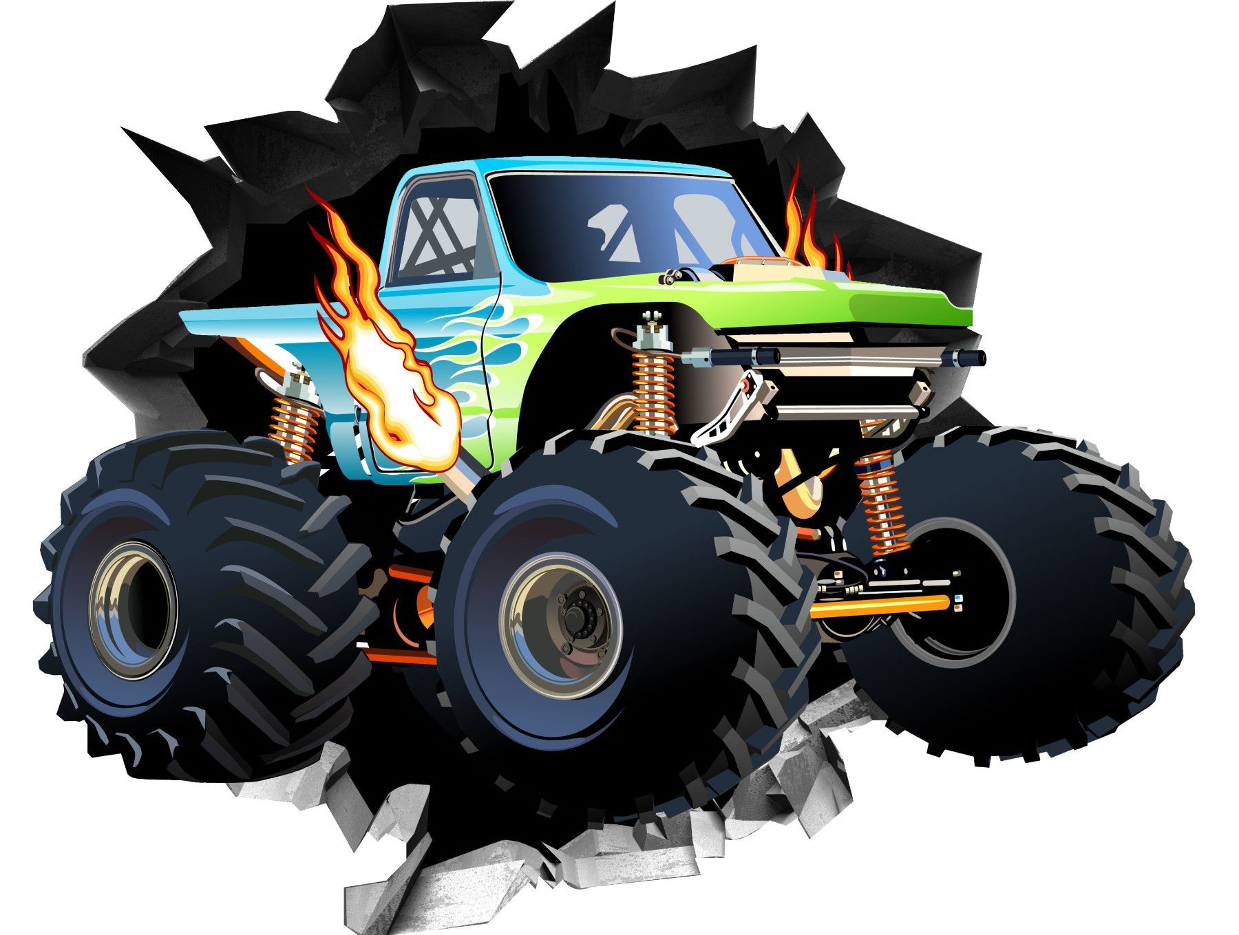 BLACK LABEL GRAFX Wandtattoo Aufkleber WallArtML283Mauerloch Monstertruck 3D