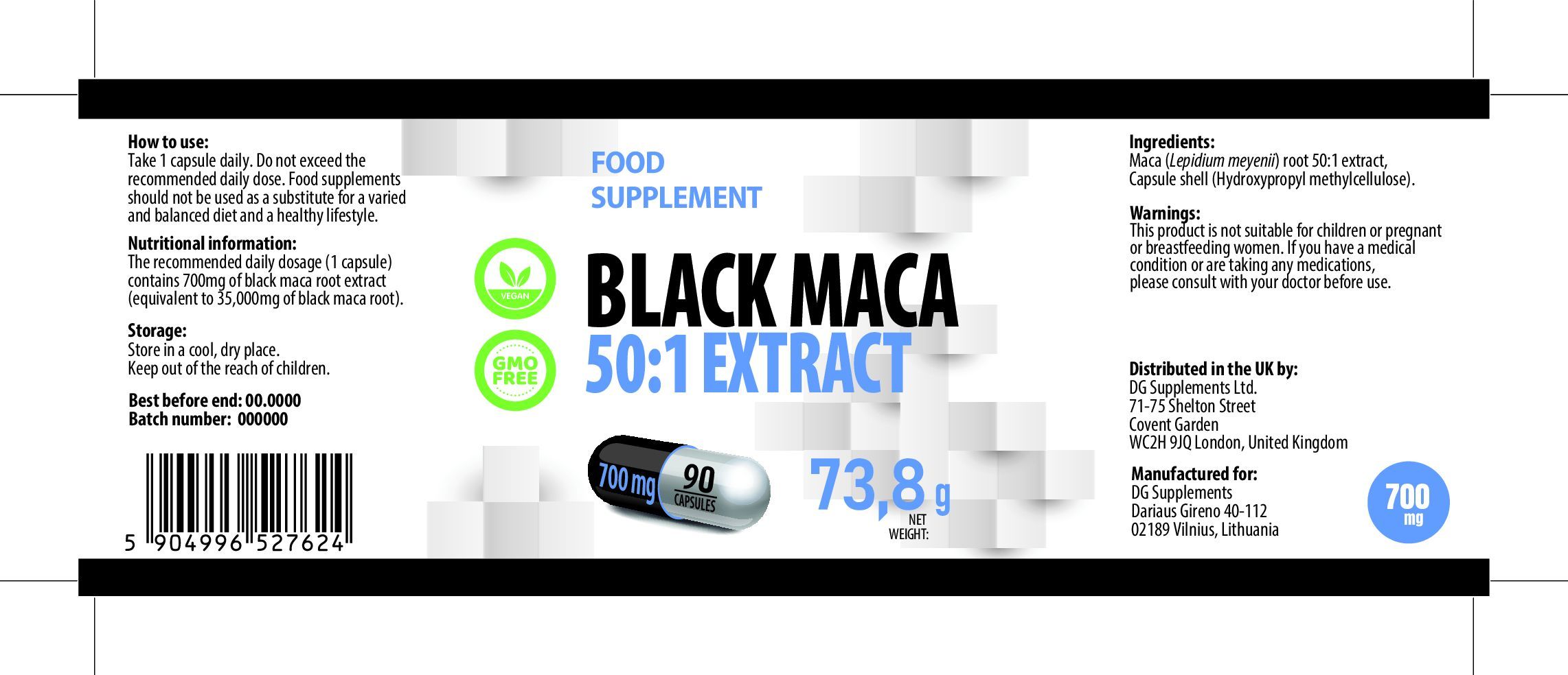 Black Maca 35.000mg Äquivalent (700mg 50:1 Extrakt) 90 vegane Kapseln