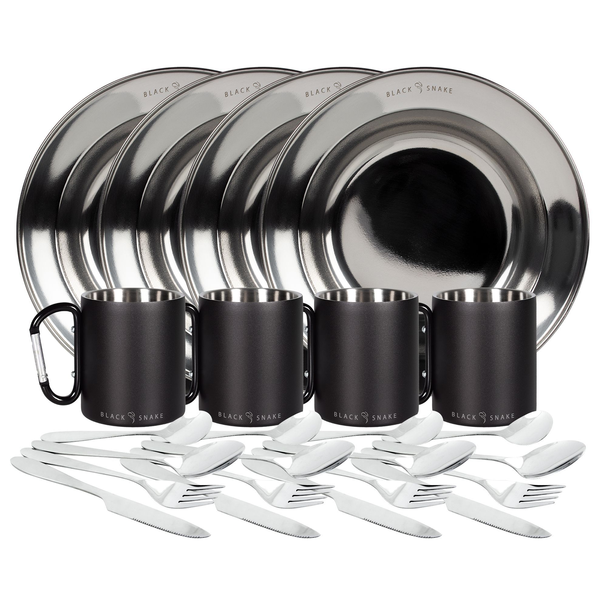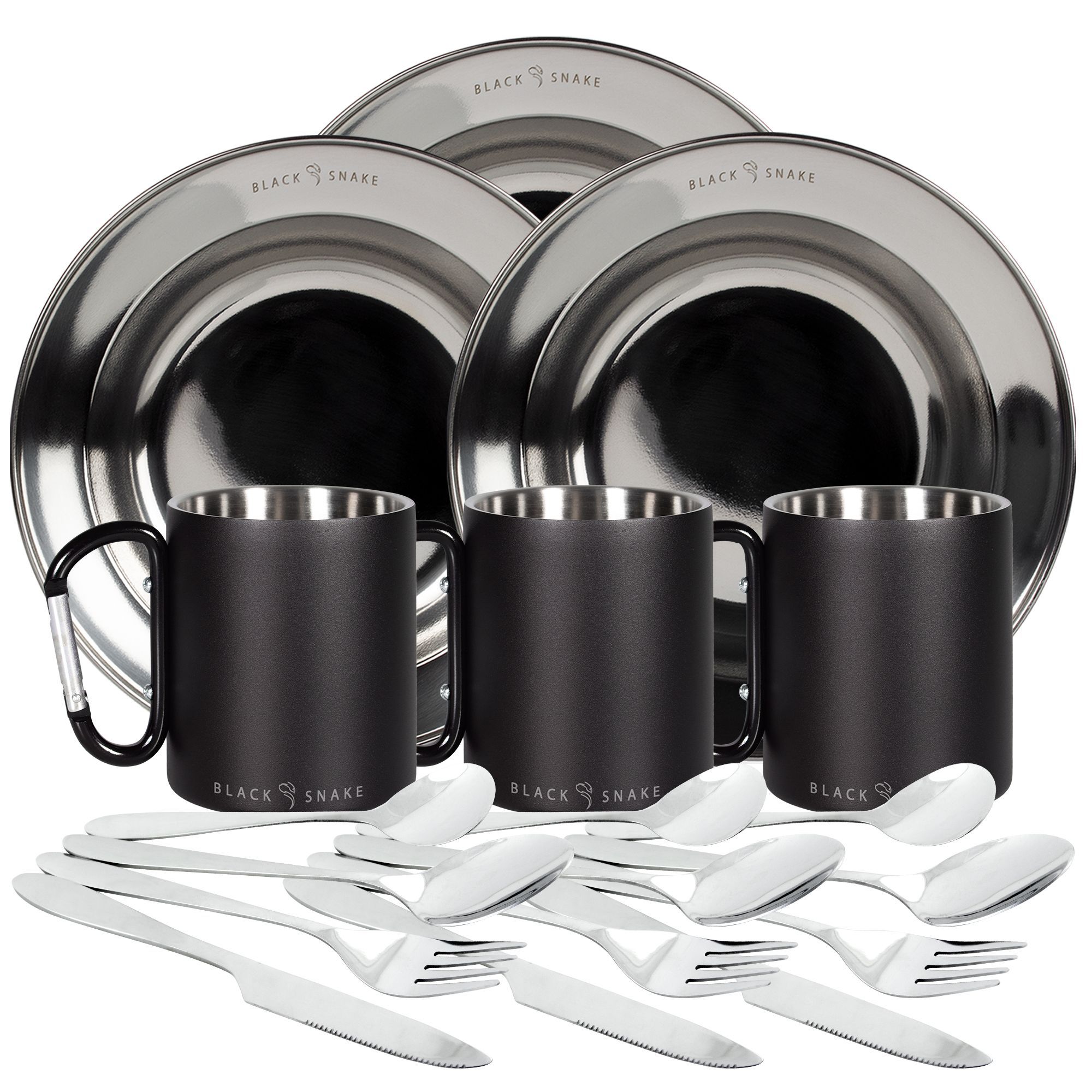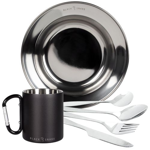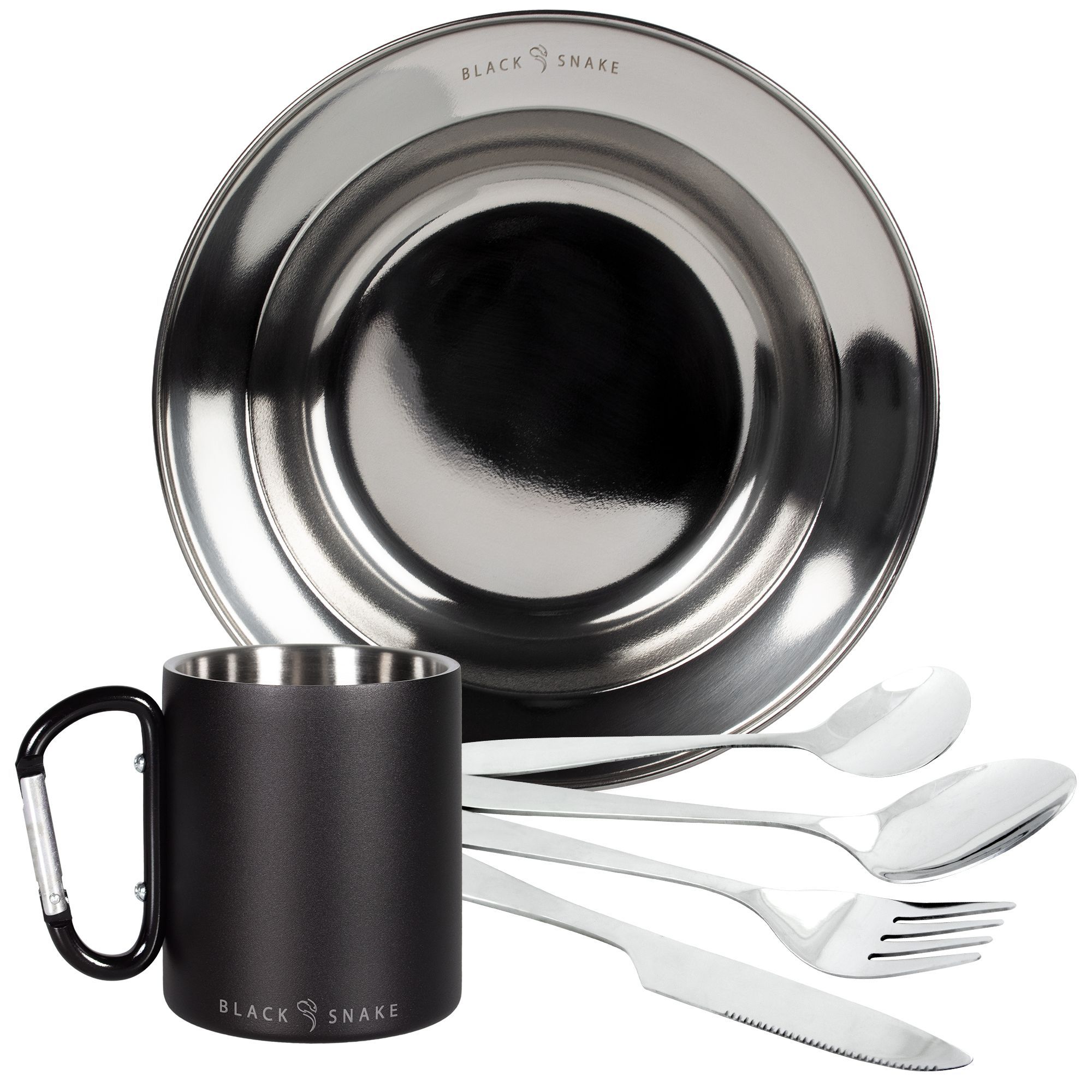Black Snake® Edelstahl Karabiner Haken Thermo Tasse mit 'lunch' Camping Essbesteck