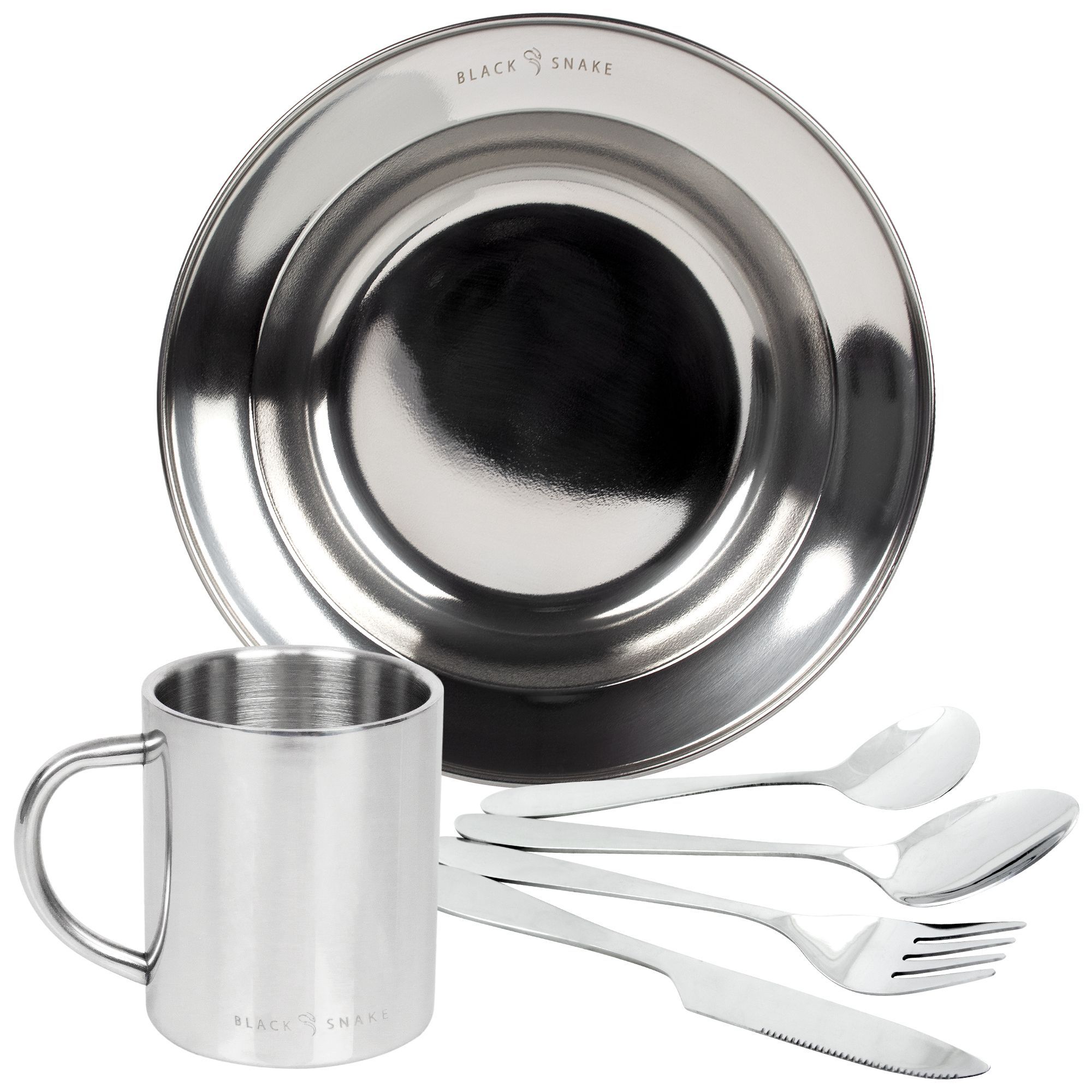 Black Snake® tiefer Camping Picknick Teller mit 'lunch' Besteck inklusive Tasse