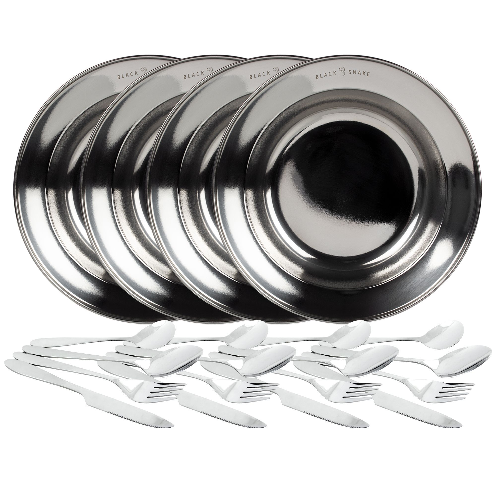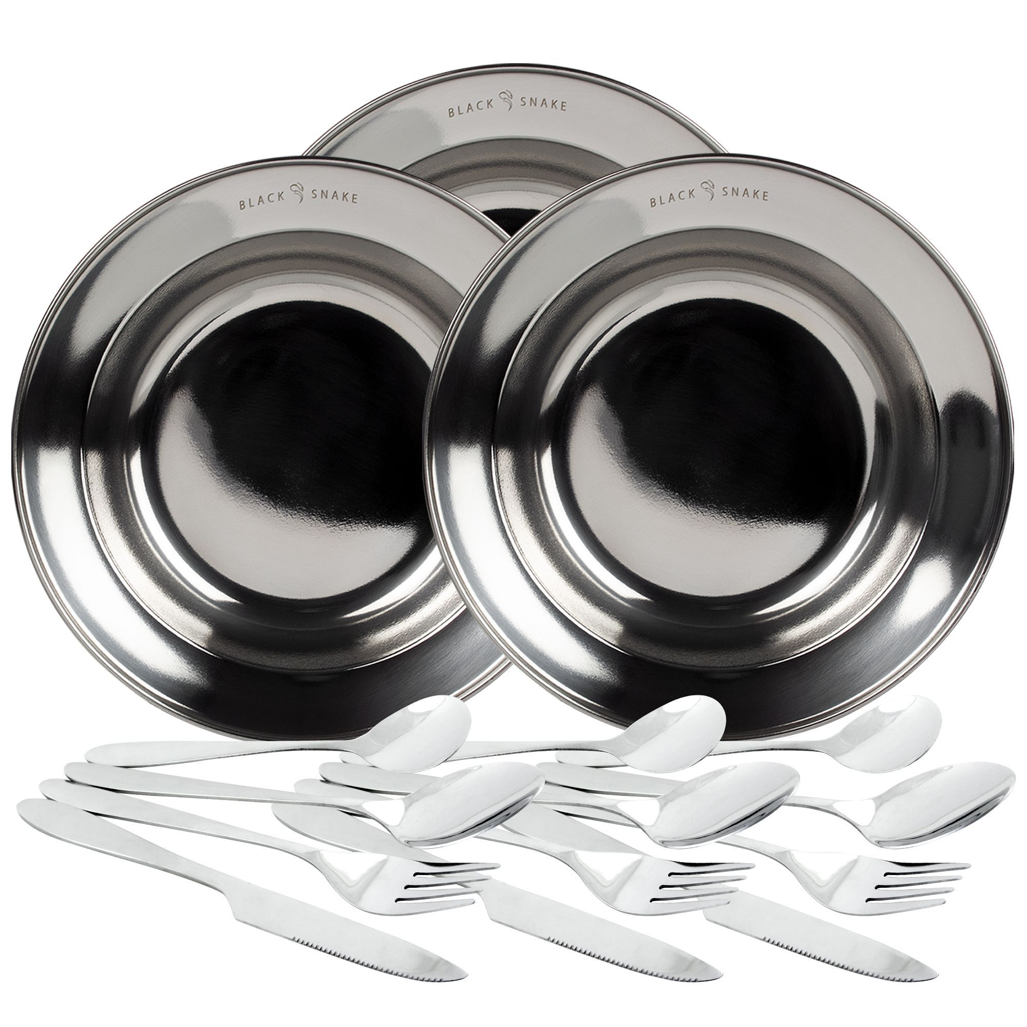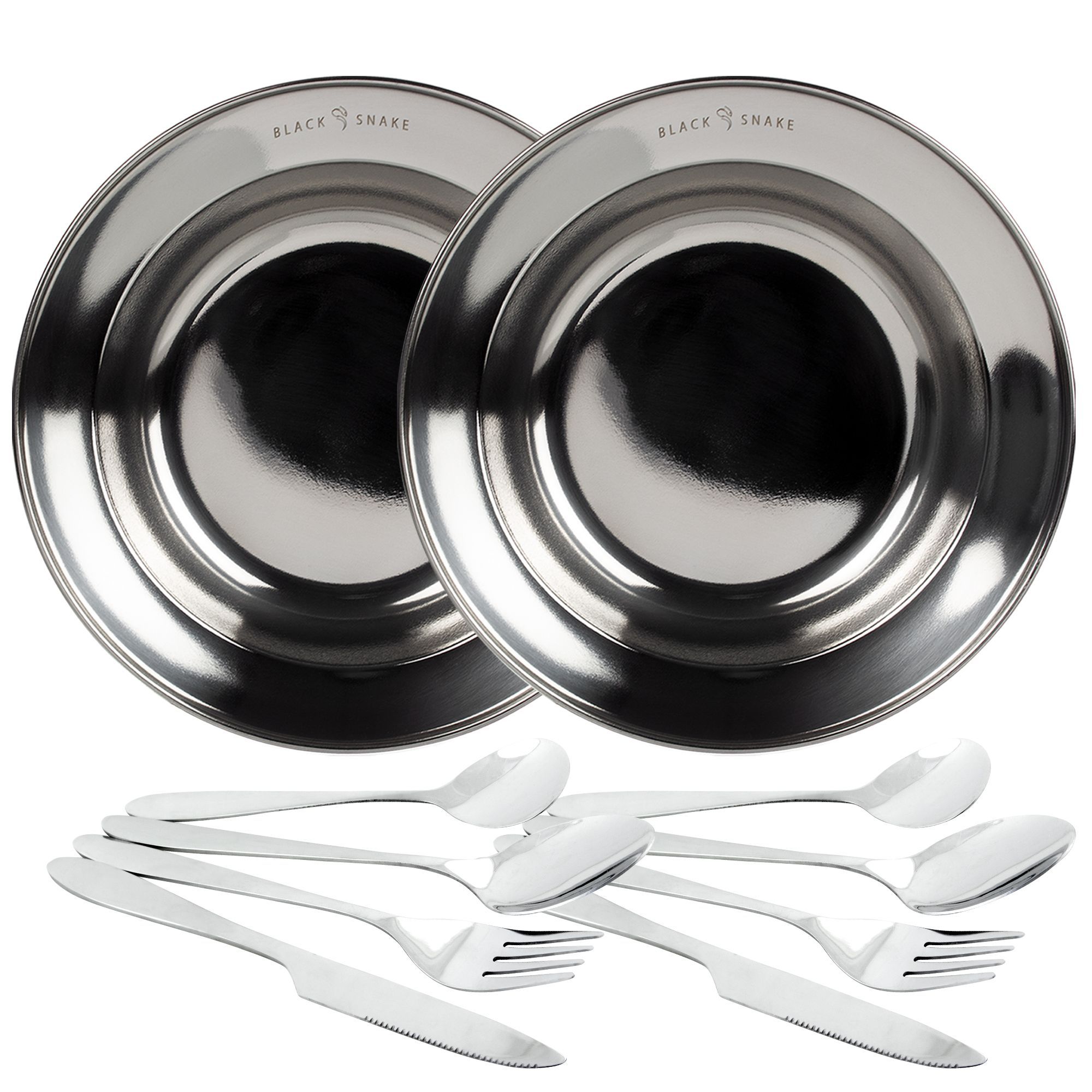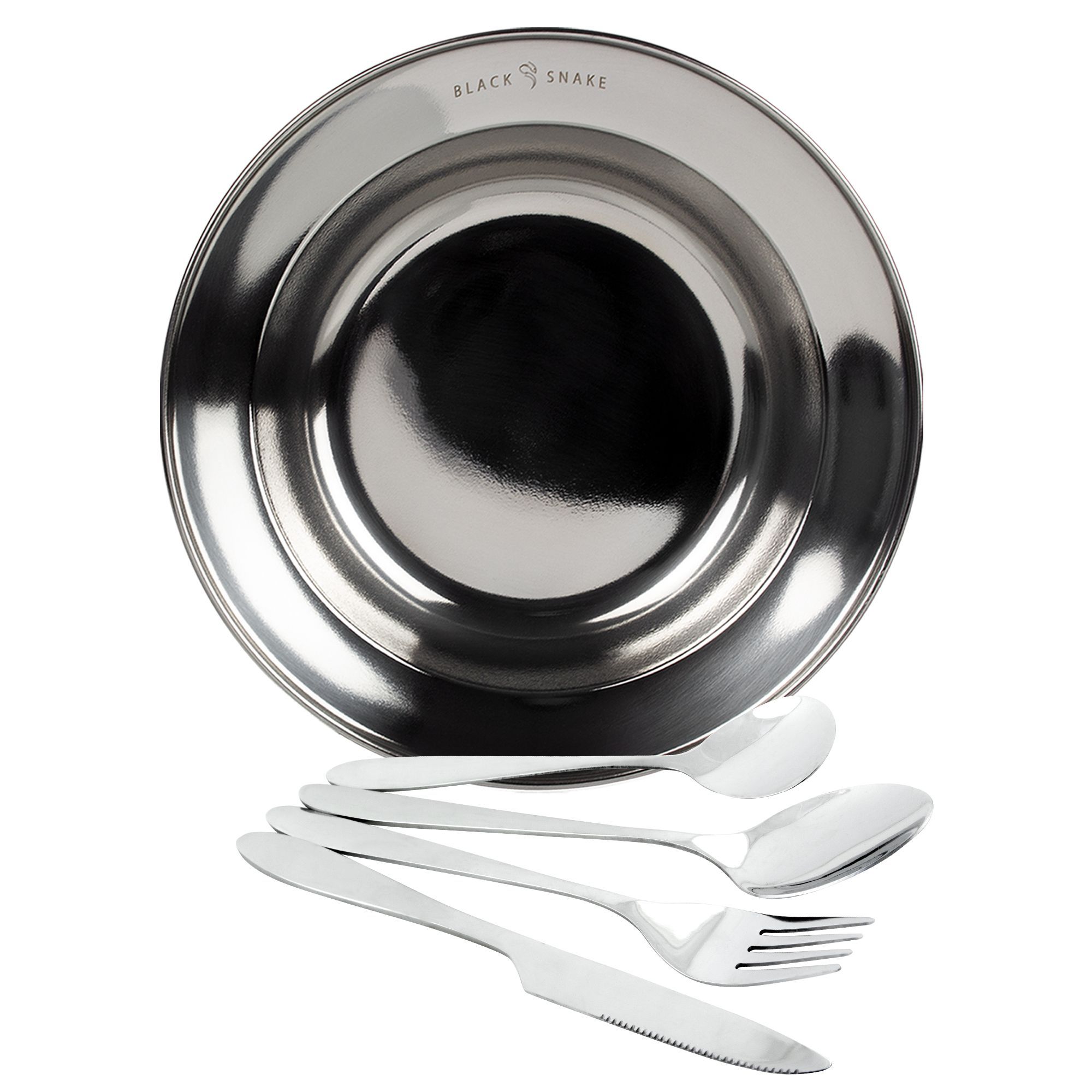 Black Snake® tiefer Edelstahl Camping Picknick Teller inklusive 'lunch' Besteck