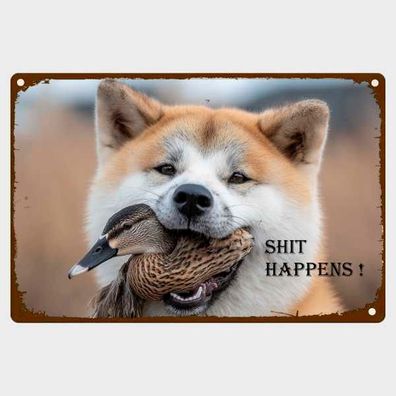 • Blechschild Hund mit Ente Shit Happens! Nostalgie Vintage Metallschild TEL3505
