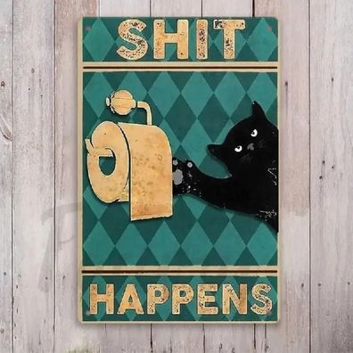 • Blechschild Shit Happens Katze Toilettenpapier Klopapier Metallschild TEL3396