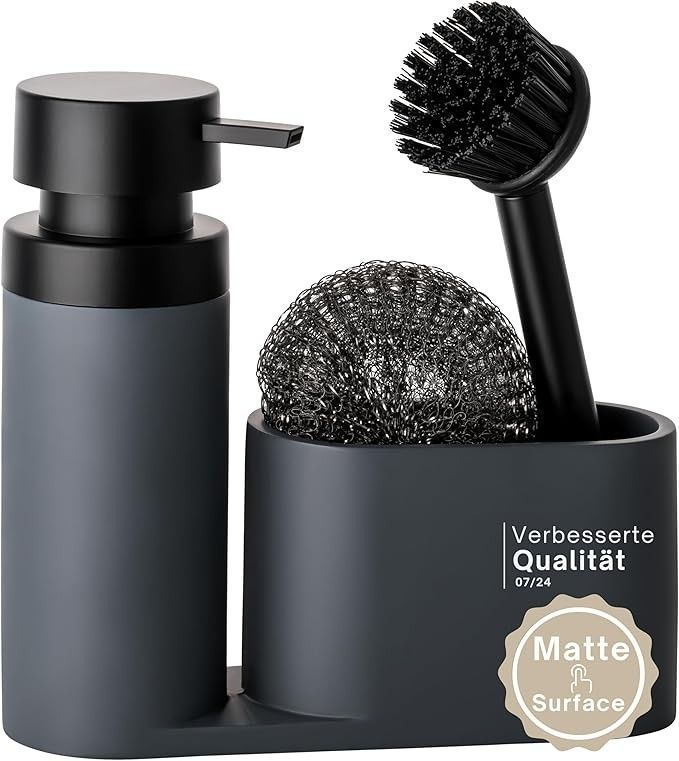 Mit Bérste und Schwamm Euro mattschwarzer Kéchen-Organizer mit Bérste und Schwamm. Der Seifenspender ist fest mit der Ablage verbunden Qualität und Design Euro dieser Kéchenorganizer éberzeugt nicht nur durch seine Funktionalität, sondern auch durch sein elegantes Design. Passt perfekt zu jeder Kéch
