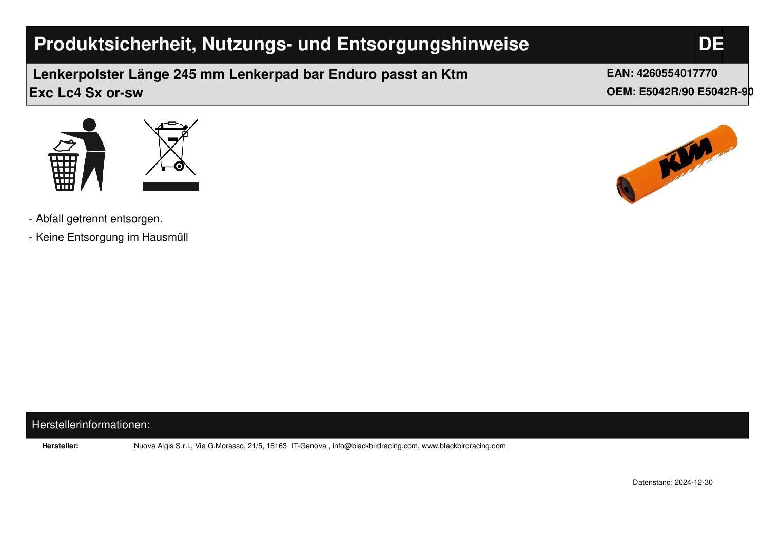 Blackbird Lenkerpolster Lenkerpad bar Motorrad Enduro passt an Ktm Exc Lc4 Sx or