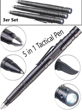 NEU 3er Set Kubotan 5in1 Tacticalpen Kugelschreiber Nothammer LED für Sicherheit