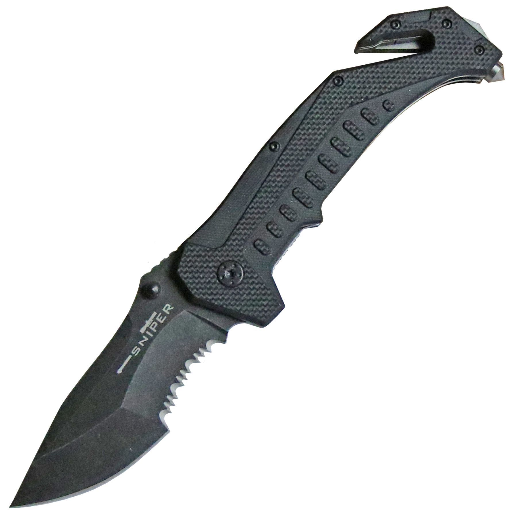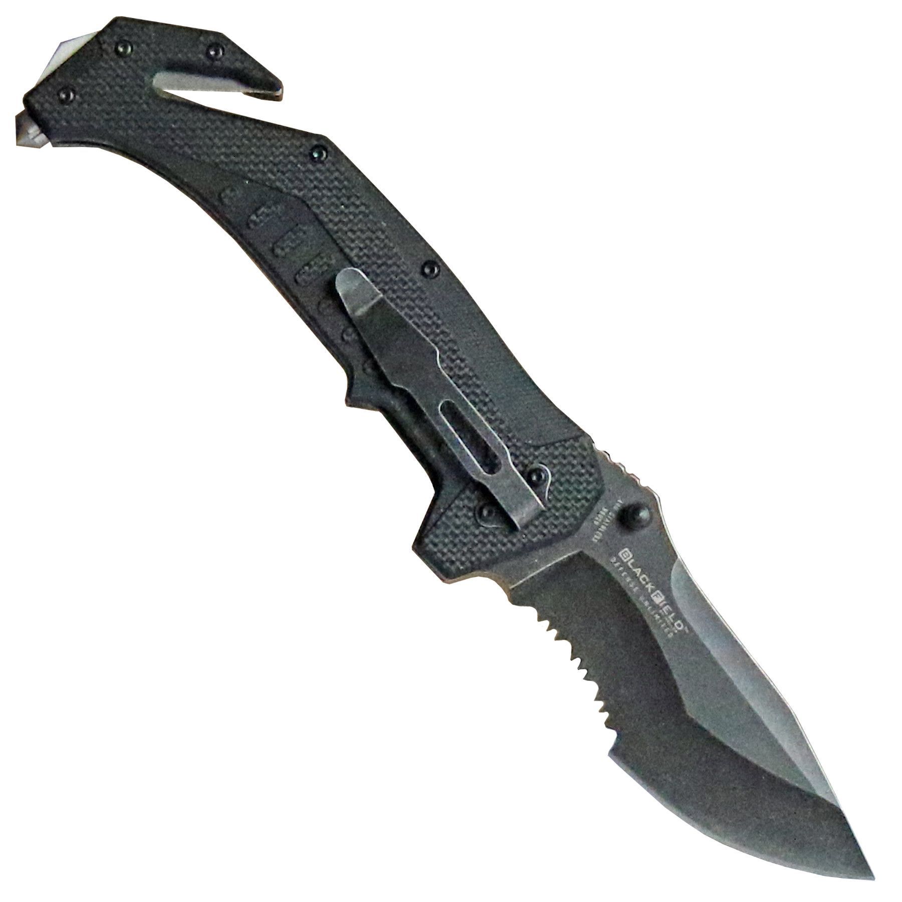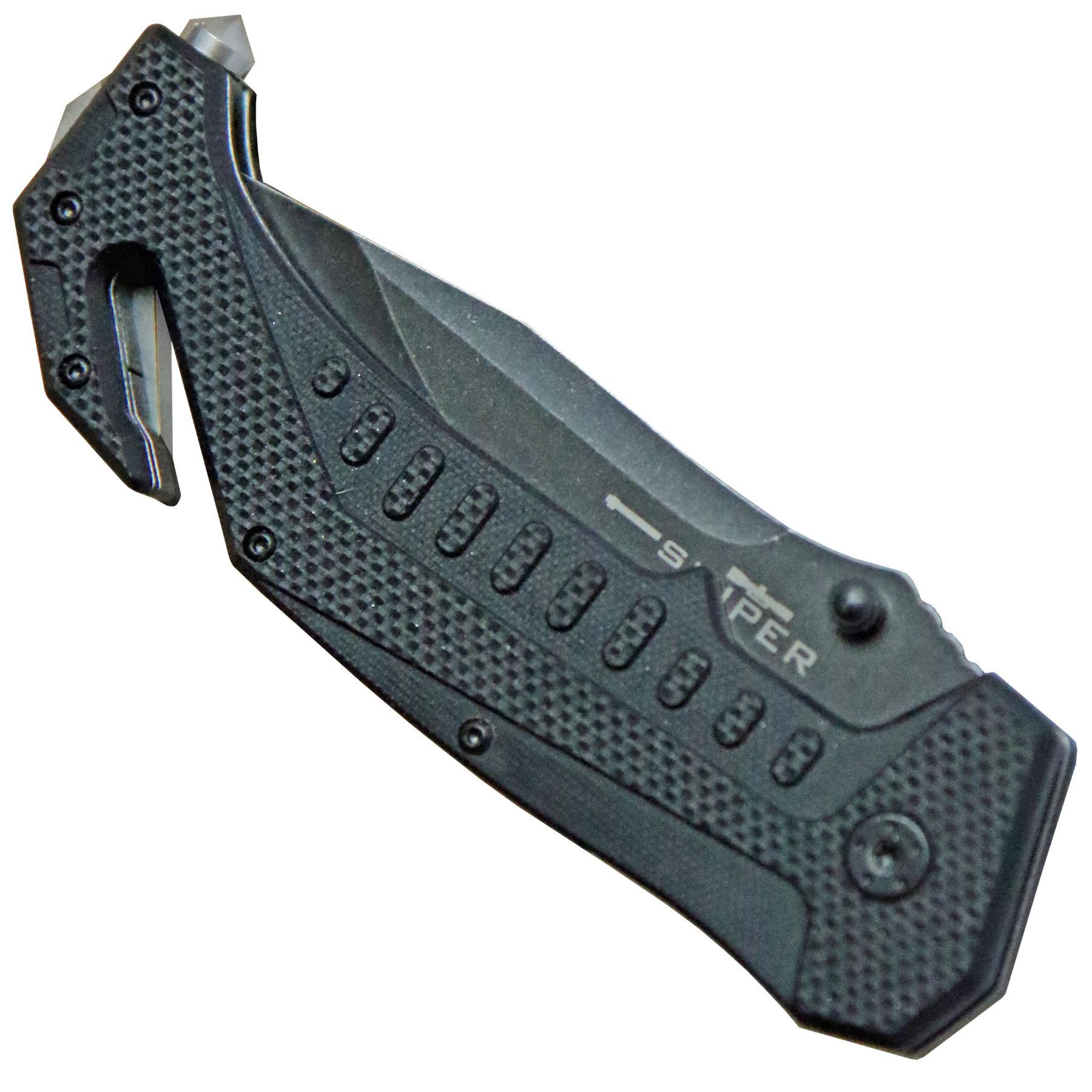 BlackField Rescue Taschenmesser "SNIPER" G10 Schalen schwarz Rettungsmesser