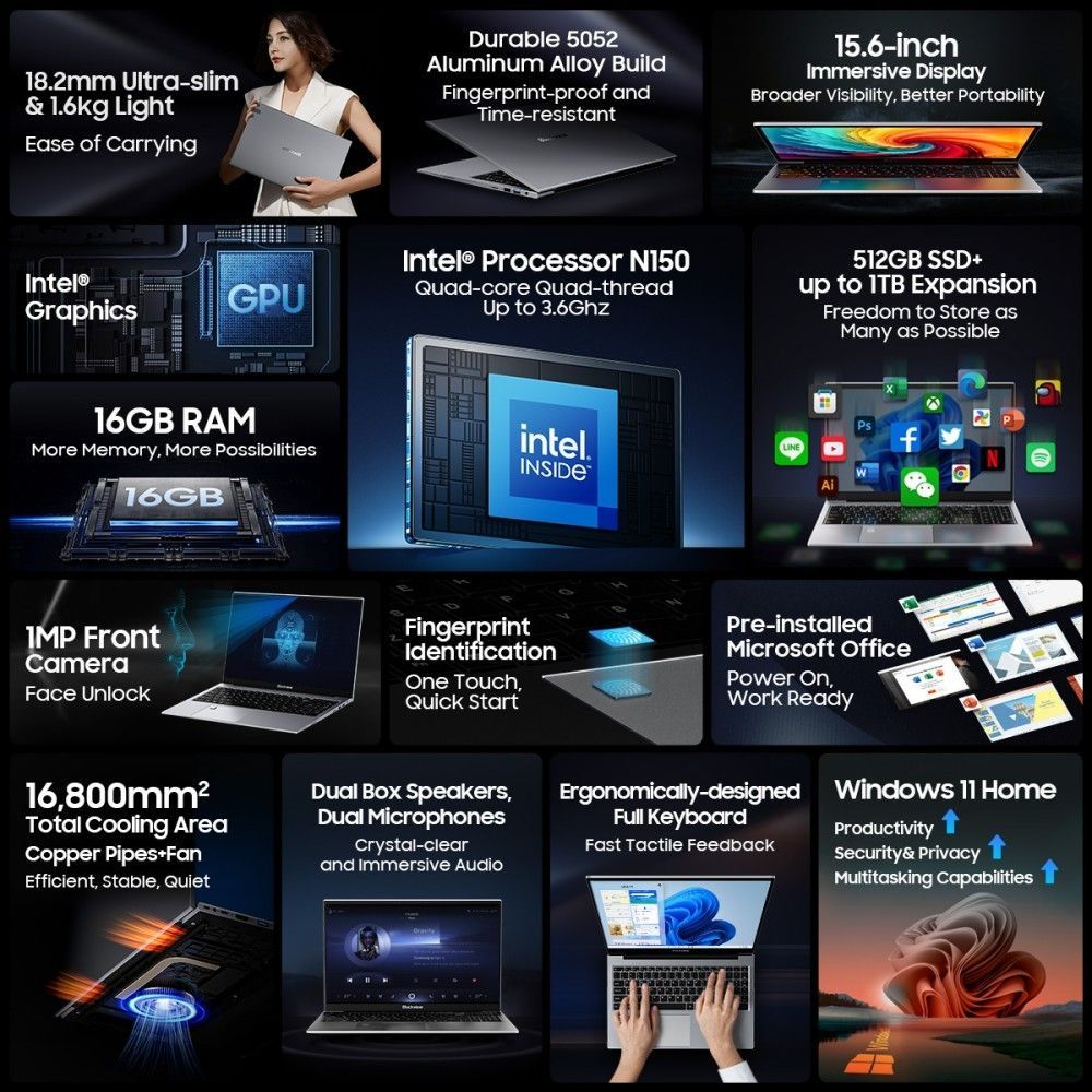 Blackview AceBook 8 Laptop, 15,6´´ IPS-Display (1920 x 1080), Grau