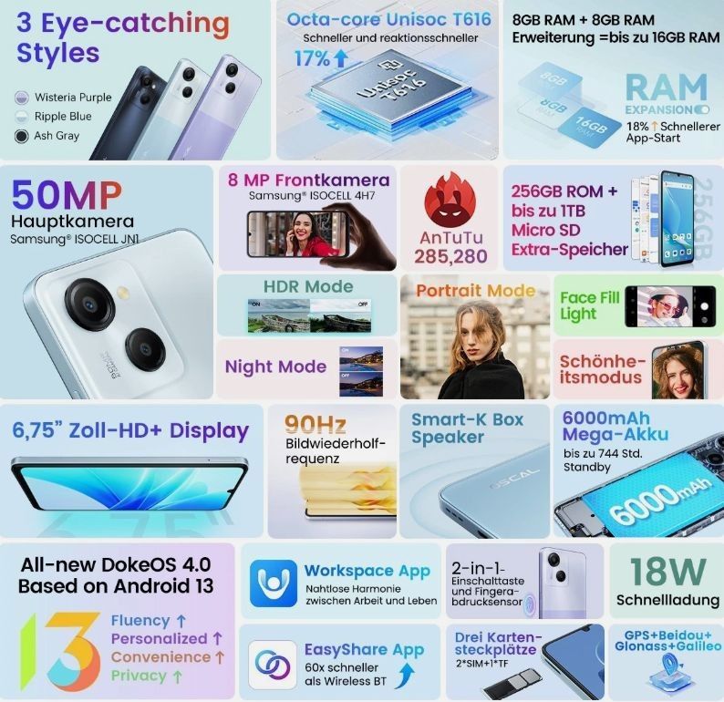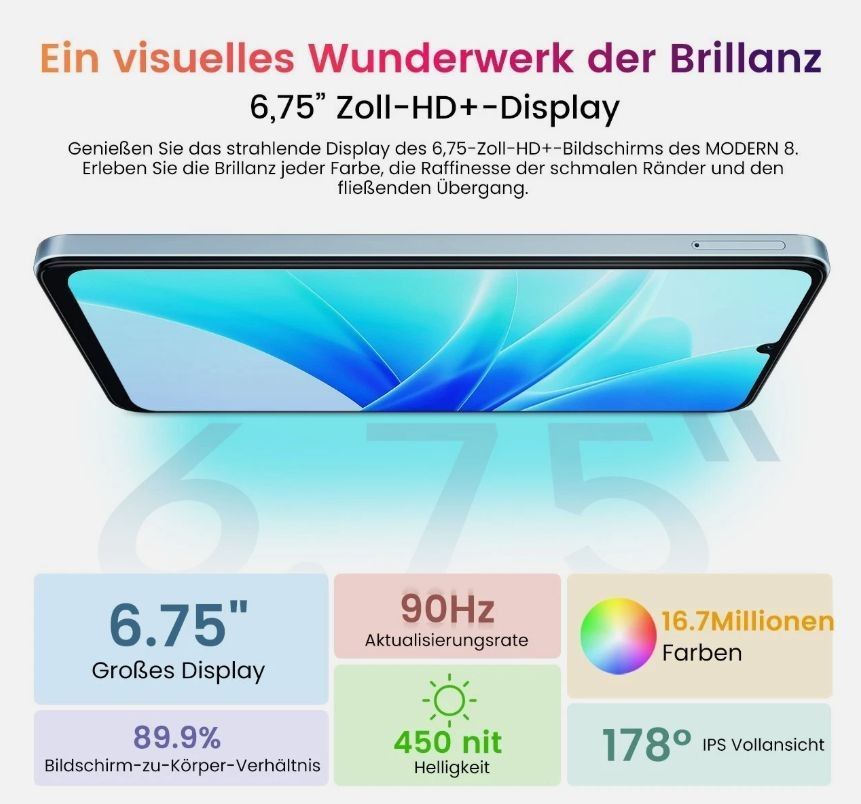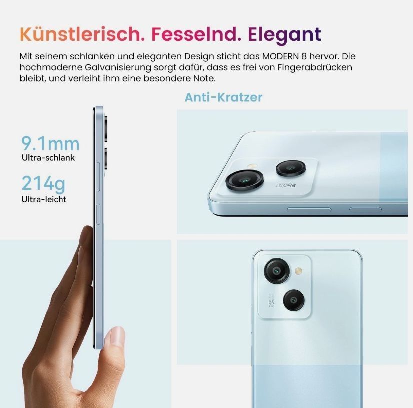 Blackview OSCAL Modern 8 Smartphone - 6.75 Zoll, 16GB RAM, 256GB ROM, 50MP, Black