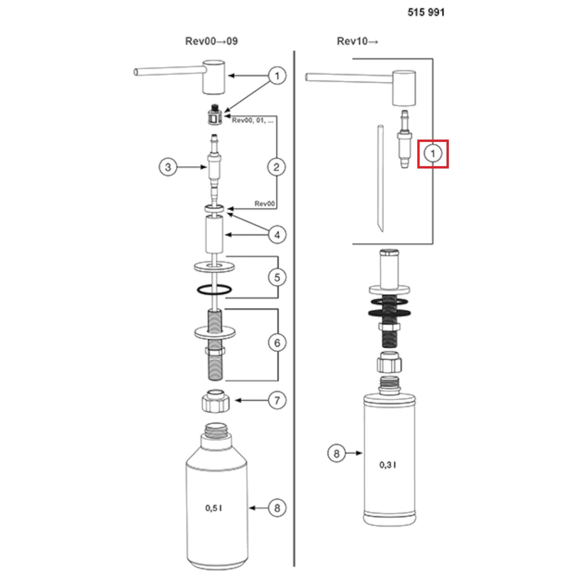 BLANCO Pumphebel Kopf + Pumpe für PIONA Edelstahl seidenmatt 123916 ab BJ /2008