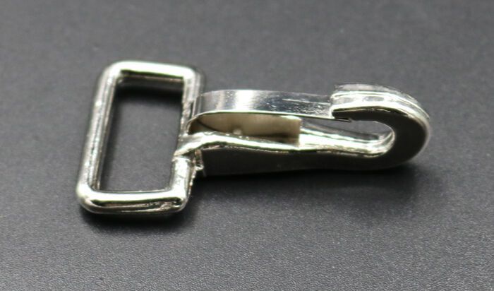 Blattfederkarabinerhaken mit gerader feststehender Öse