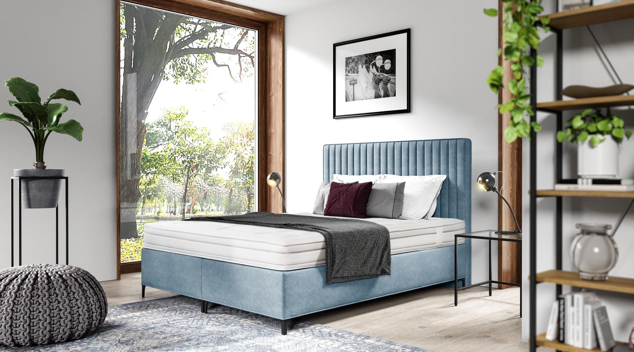Blau Bett Designer Doppelbett Polstermöbel Schlafzimmer Boxspringbett