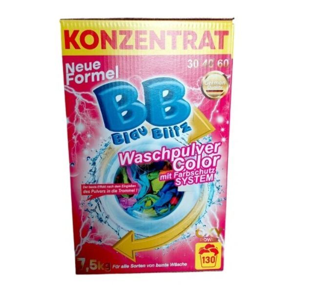 BLAU BLITZ PULVER 130 WÄSCHEN !!Konzipiert für das Waschen von farbigen StoffenDank der starken Wirkung der darin enthaltenen Enzyme entfernt es sehr effektiv Schmutz von Fett, Kaffee, Tee und Wein.Das Pulver hat einen angenehmen, milden Geruch.Reinigt in einem weiten Temperaturbereich ab 20°CEs lös