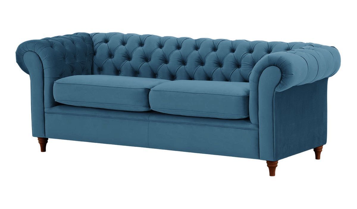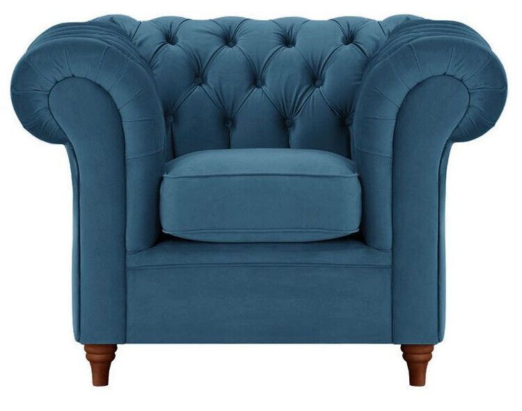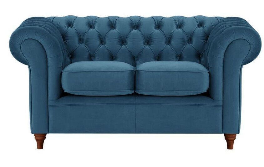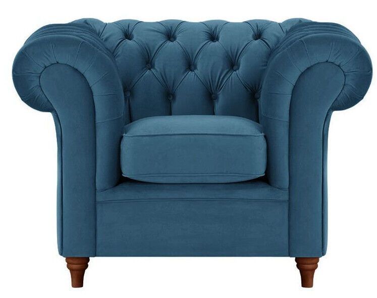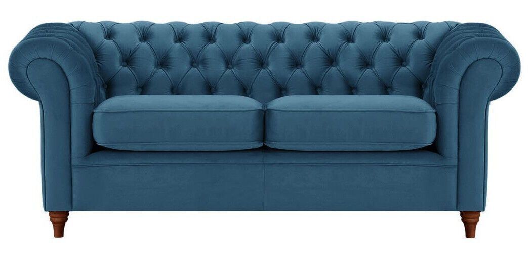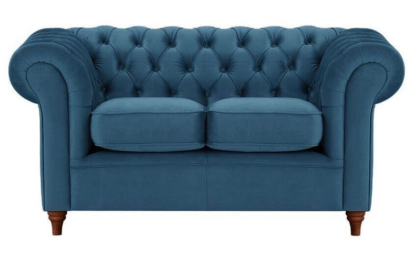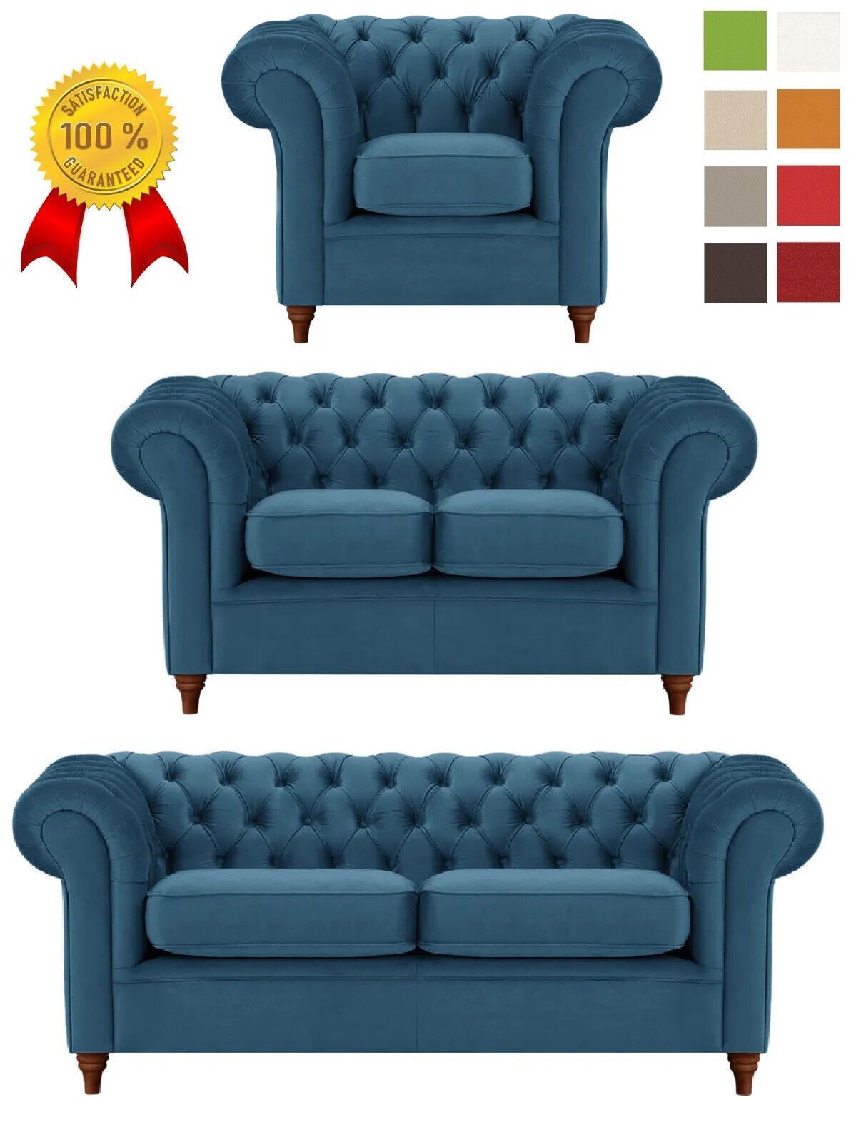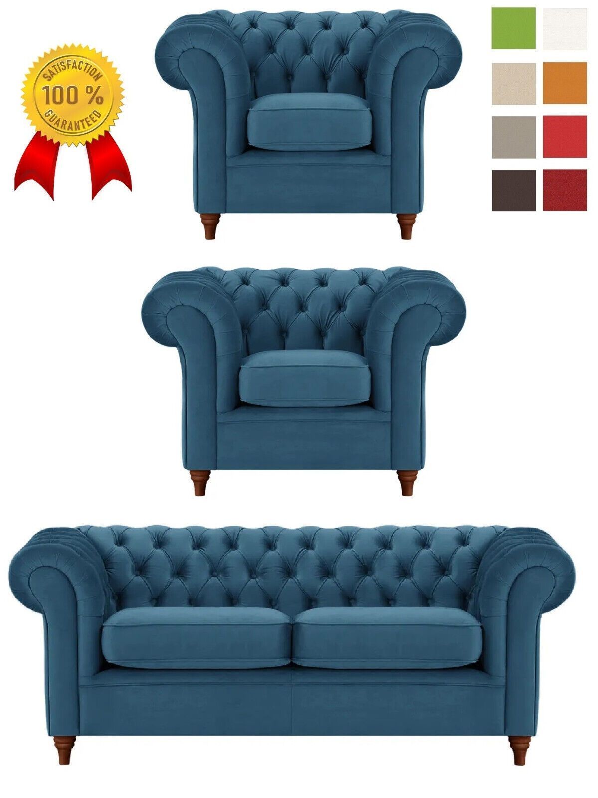 BLAU SAMT SET 1 + 2 + 3 Chesterfield 3 + 2 + 1 SITZER SOFA SESSEL Polstergarnitur